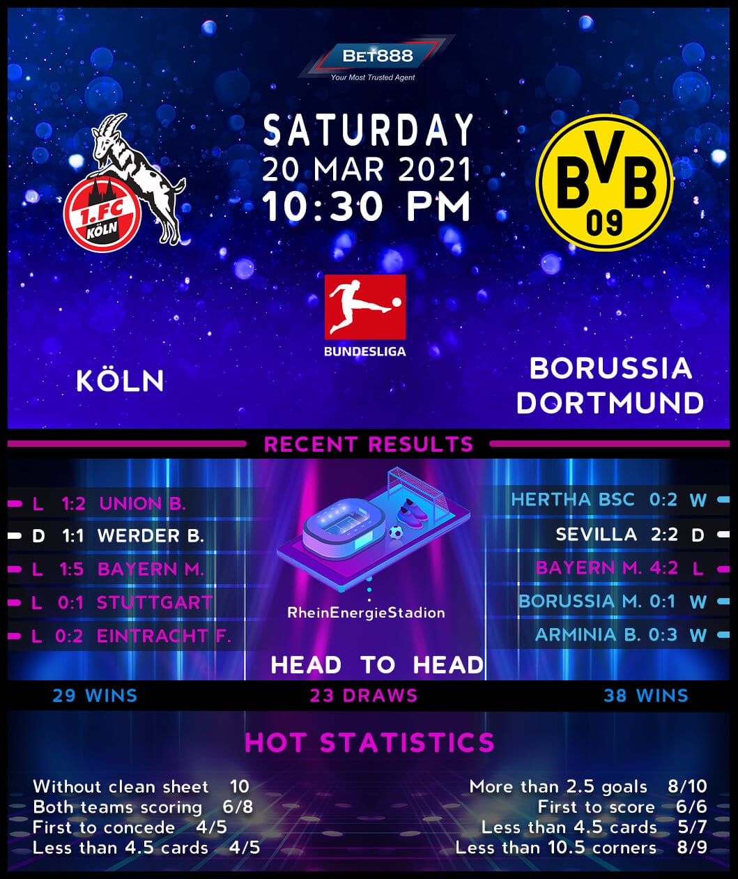 Relegation-threatened Koln welcome Borussia Dortmund to the RheinEnergieStadion looking to clinch a league double in their Bundesliga H2Hs for the first time since 1988/89.