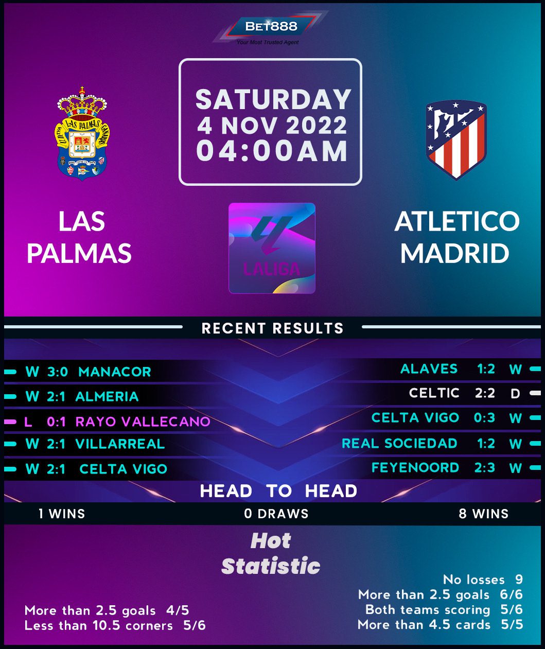 Injury-hit Atletico Madrid head to the Estadio de Gran Canaria to encounter La Liga newcomers Las Palmas.