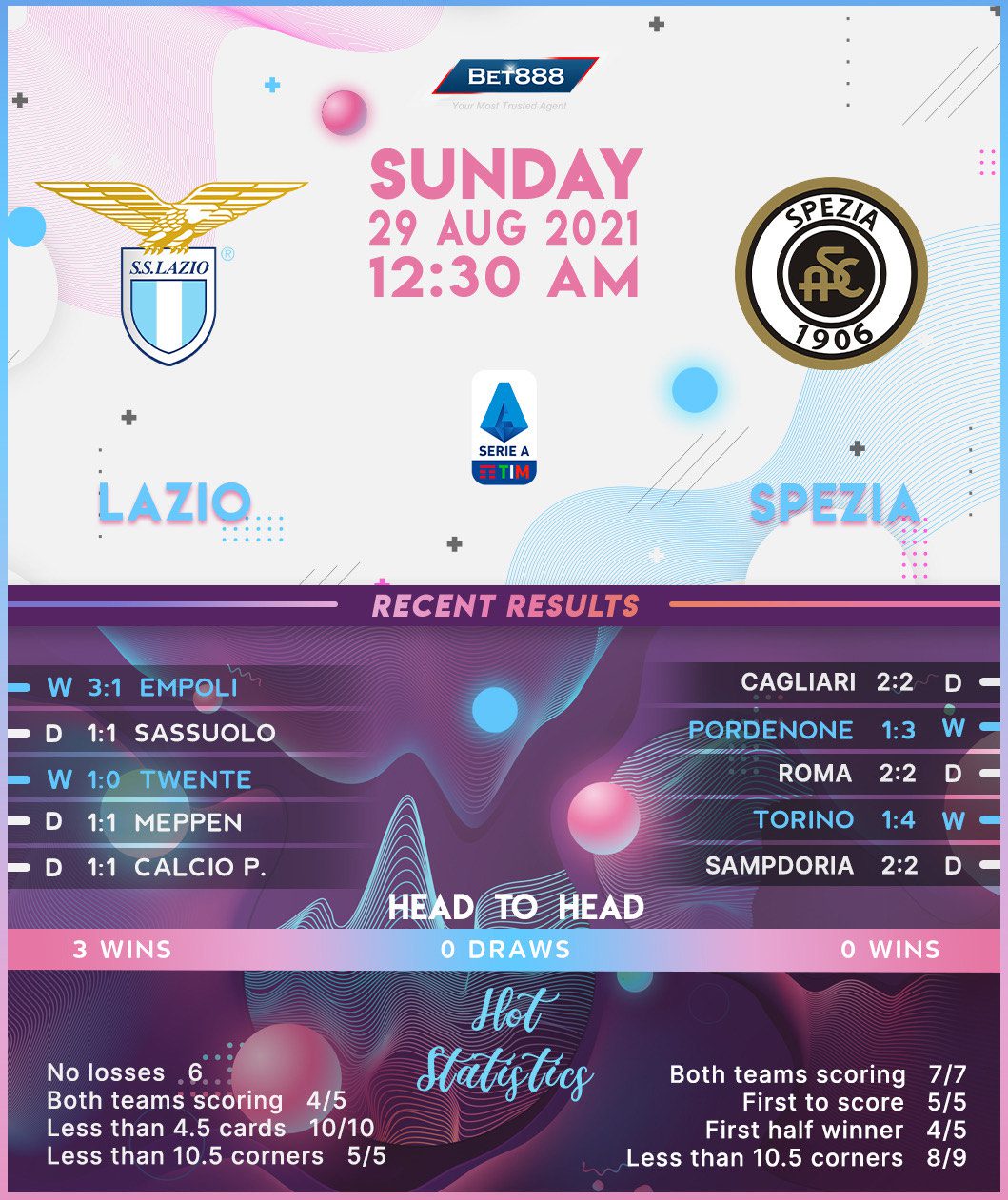 Despite conceding first four minutes into the new season, Lazio came from behind to seal a comfortable 3-1 away triumph over promoted Empoli to provide new boss Maurizio Sarri with a flying start. Things could get ugly here, considering ‘I Biancocelesti’ have gone winless in five consecutive Serie A home season openers (D2, L3) since beating Bologna 2-1 in August 2015. With that said, the hosts are the only Serie A side alongside reigning champions Inter Milan to avoid defeat in every top-flight fixture at home in 2021 (W11, D1). Additionally, Lazio prevailed in both last season’s H2Hs against Spezia by the identical 2-1 scoreline after scoring first on each occasion. They are likely to grab another victory should they open the scoring, considering they won all 12 home Serie A outings when breaking the deadlock last season.