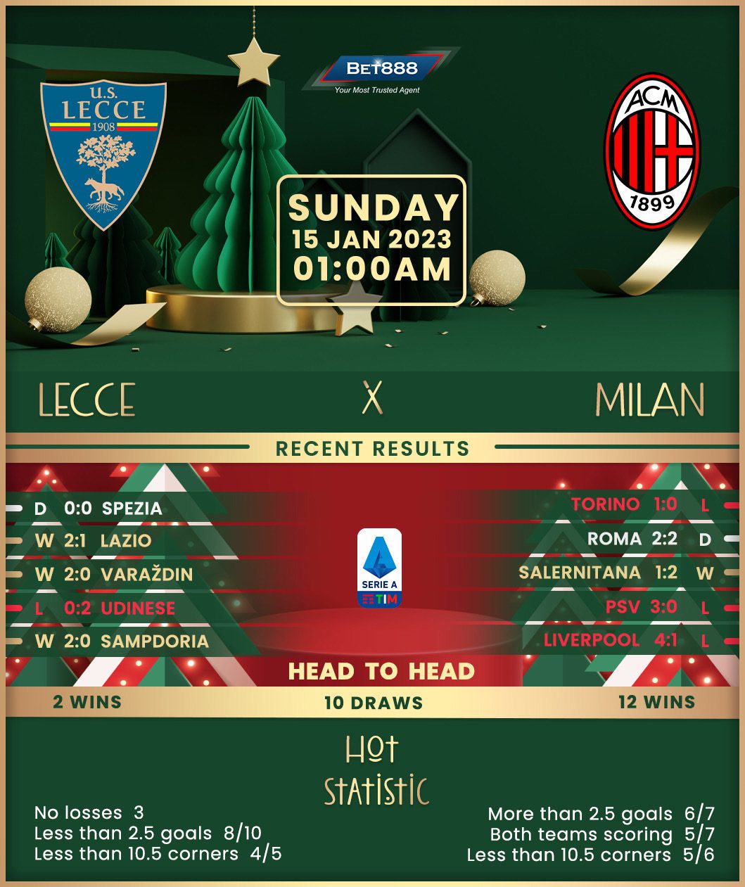 Defending Serie A champions AC Milan take a trip to Stadio Via del Mare to meet mid-table Lecce in a must-win clash.
