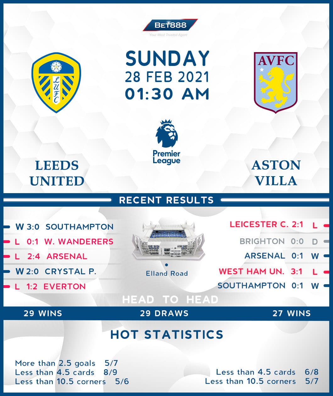 Leeds United vs Aston Villa 28/02/21