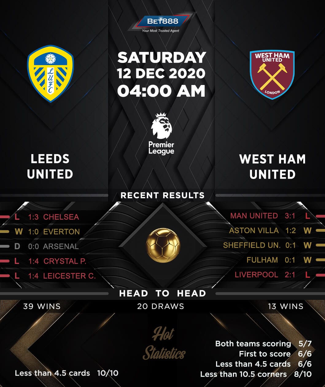 Leeds United vs West Ham United 12/12/20