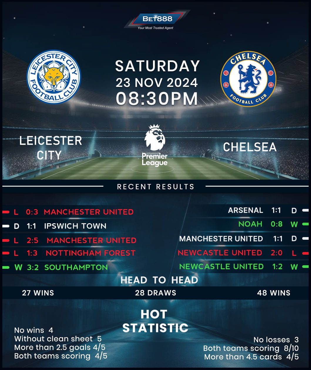 Saturday’s Premier League action kicks off at the King Power Stadium as Leicester City and Chelsea go head-to-head in a handsomely-looking game.