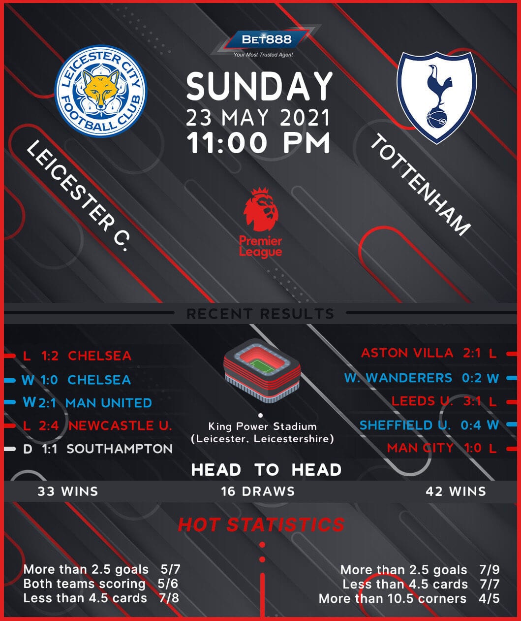 Leicester City’s hopes of securing a top-four finish in the Premier League are on the line as Tottenham Hotspur arrive at the King Power Stadium in the season finale.