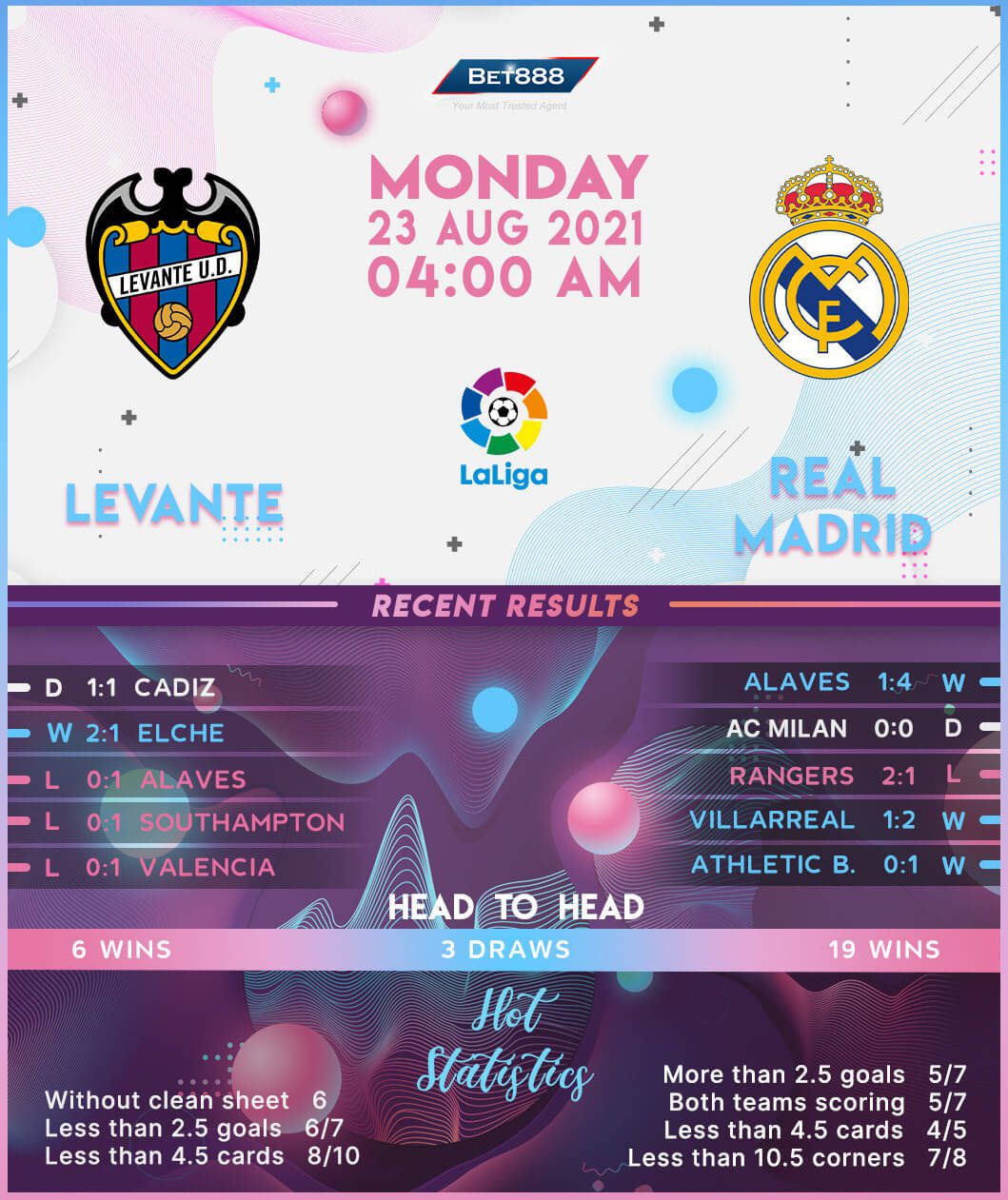On the other hand, Real Madrid’s rampant second-half display away to Deportivo Alaves on the opening weekend saw them claim a comprehensive 4-1 victory following a goalless HT scoreline. Returning ‘Los Blancos’ boss Carlo Ancelotti must be relishing the prospect of taking on Levante in his first La Liga trip since the re-appointment, having won all four top-flight clashes against this opposition during his previous stint at the club. The 2020/21 La Liga runners-up are enjoying an eye-catching 19-match unbeaten top-flight streak (W14, D5) – the longest ongoing such run of any team currently in the division. Accident or fate, but Madrid’s last La Liga defeat came at the hands of Levante back in January. But the visitors have won each of their last four La Liga trips, three of which yielded a three-goal margin.
