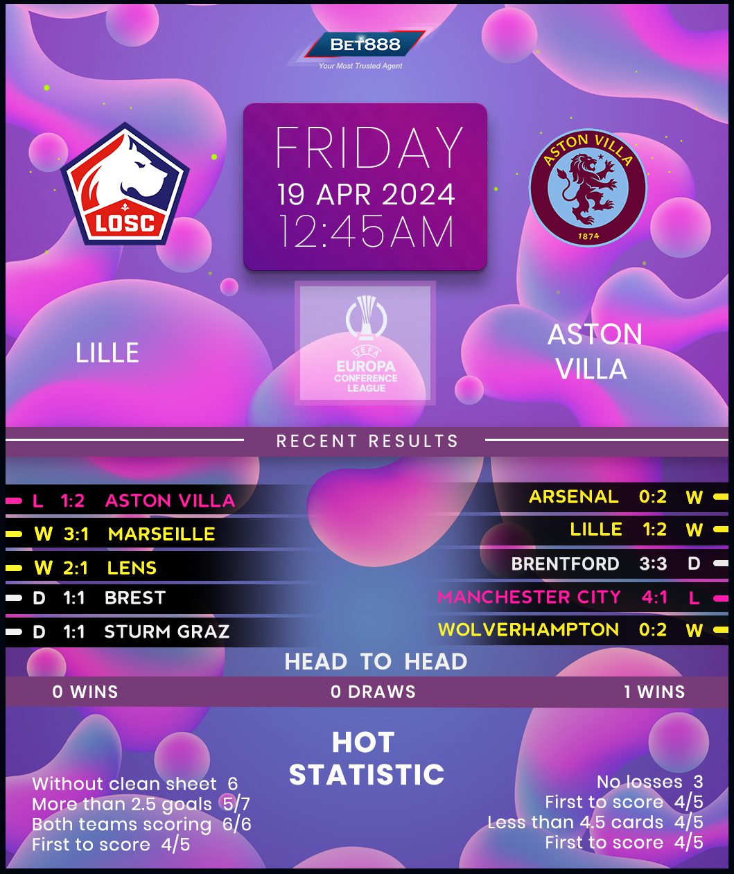 Stade Pierre-Mauroy sets the stage for the second leg of a fiercely-contested Europa Conference League quarter-final tie between Lille and Aston Villa, with the visitors boasting a 2-1 aggregate lead.