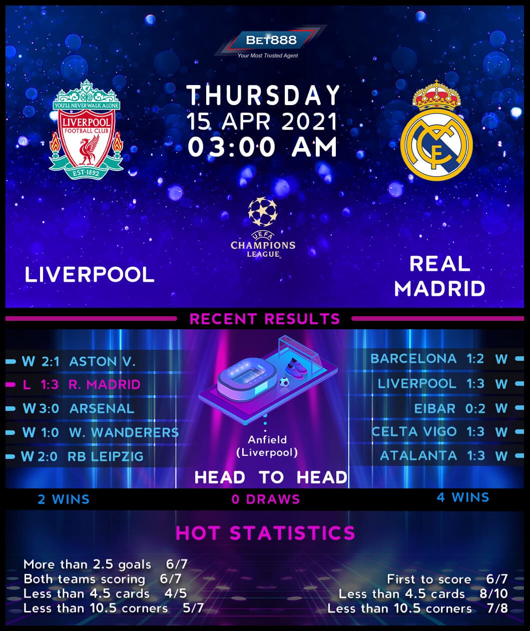 Anfield is the venue as Liverpool look to overturn a 3-1 first-leg deficit against Real Madrid in their blockbuster UEFA Champions League quarter-final tie.