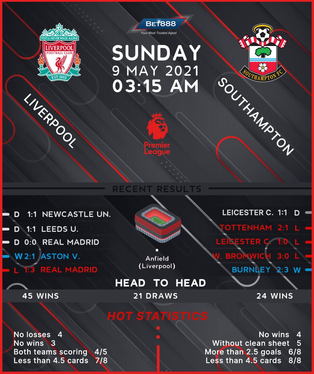 Anfield is the venue as Liverpool and Southampton go head-to-head in an exciting Premier League match-up, with the home team in desperate need of points.