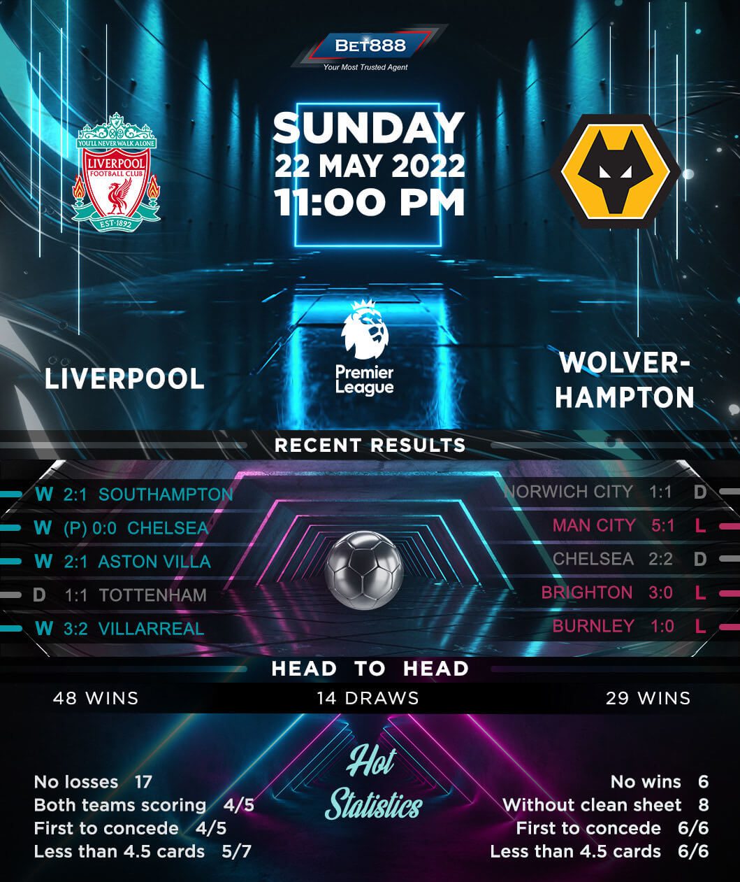 Premier League title hopefuls Liverpool will complete an impressive 2021/22 season at Anfield against underperforming Wolverhampton Wanderers.