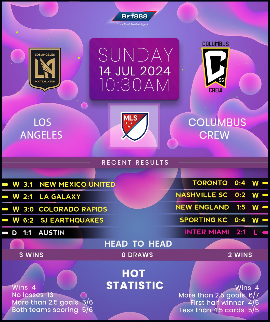 Los Angeles’ final warm-up for this blockbuster tie went smoothly, as they thumped USL Championship side New Mexico 3-1 in midweek US Open Cup action, stretching their winning streak to four matches. Steve Cherundolo’s free-firing frontline netted multiple goals in all four victories. They had achieved that feat in three consecutive MLS duels against Columbus (W3) before a 2-1 defeat in their most recent H2H in December 2013. BMO Stadium has been LAFC’s safe haven, with the Los Angeles outfit racking up a jaw-dropping eight-game winning run on home turf in the build-up to this fixture. As if that’s not intimidating enough, Cherundolo’s troops bagged at least two goals in seven of those eight triumphs, highlighting the potential for a high-scoring event.