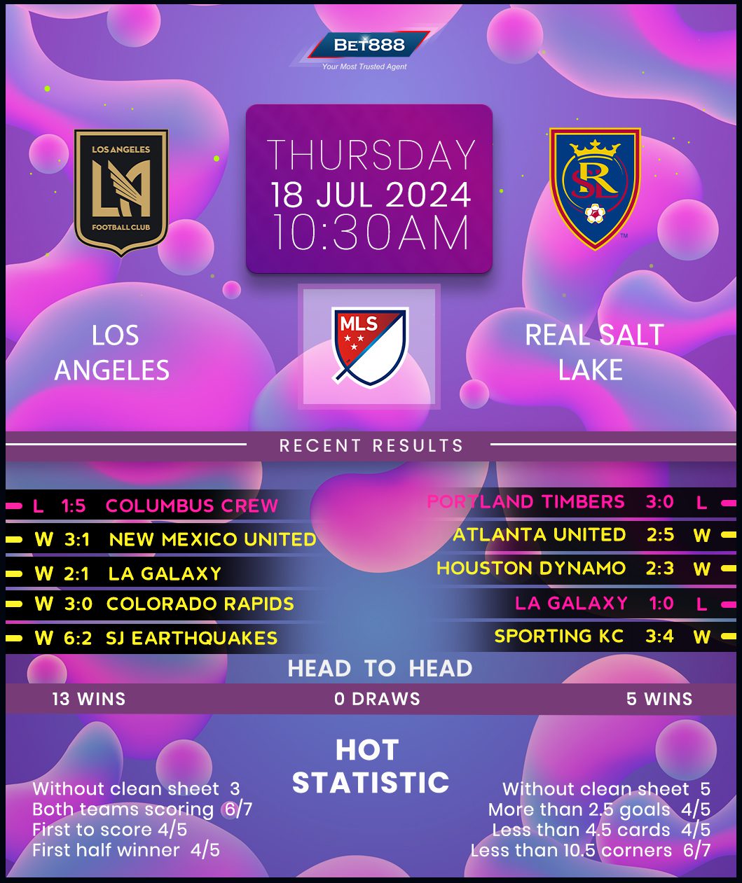 Like their hosts, Real Salt Lake cannot forget last weekend soon enough after Seattle Sounders thrashed them 3-0 on the road, condemning them to a second defeat in four matches (W2). Level on points with Los Angeles, the visitors grasp the importance of extending a two-game winning H2H streak in MLS, buoyed by a 3-0 victory in March’s reverse fixture. However, Salt Lake’s recent away form douses the optimism among the traveling faithful, with Pablo Mastroeni’s team picking up just one win on their last six MLS travels (D4, L1). The away goals have been at a premium for RSL of late. Mastroeni’s charges have drawn a blank in two of their last three away league games.