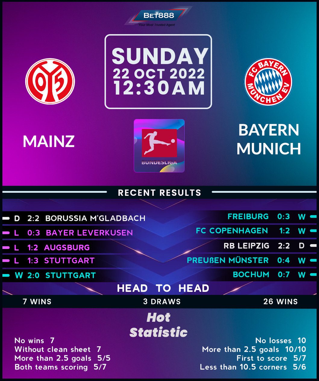 Perennial Bundesliga champions Bayern Munich head to the Mewa Arena to lock horns with second-from-bottom Mainz 05.