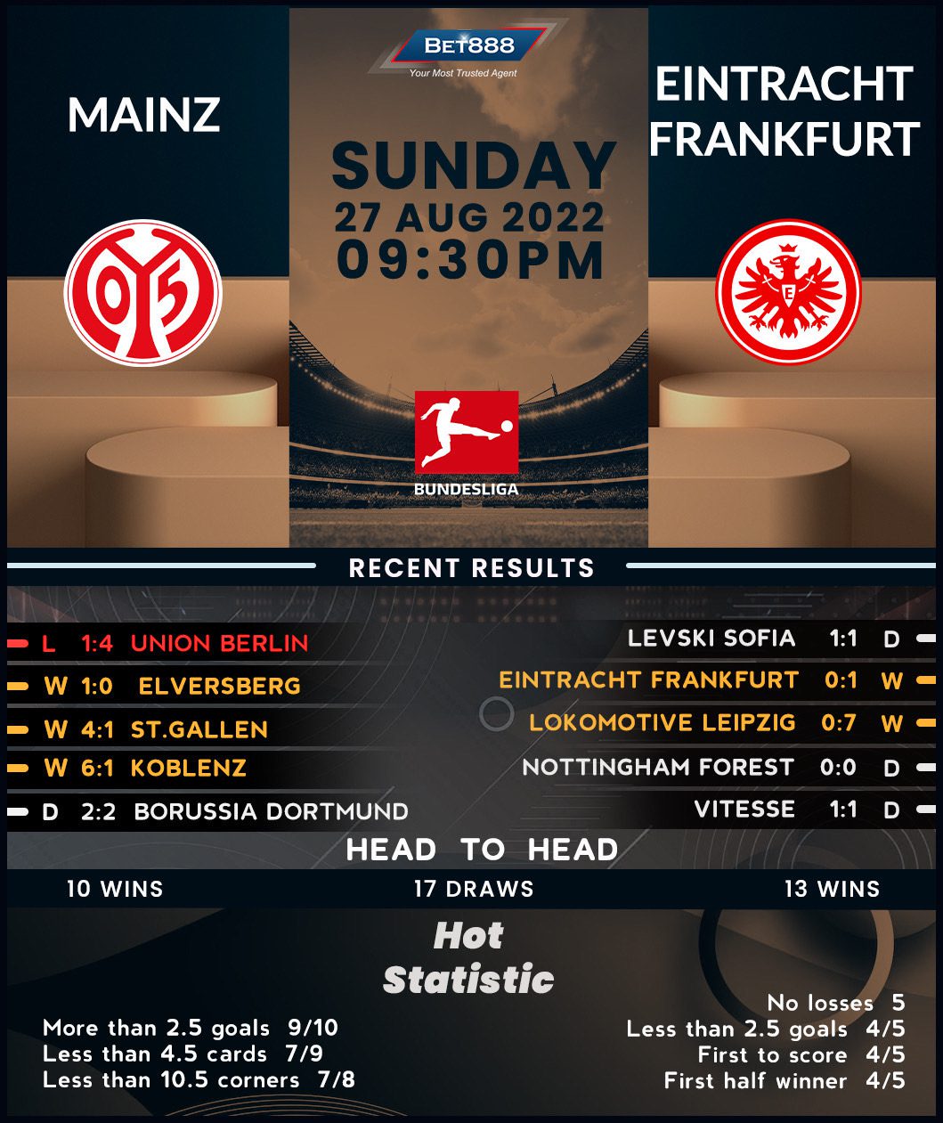 Mainz 05 and Eintracht Frankfurt are set to trade tackles in an exciting Bundesliga match-up at the Mew Arena.