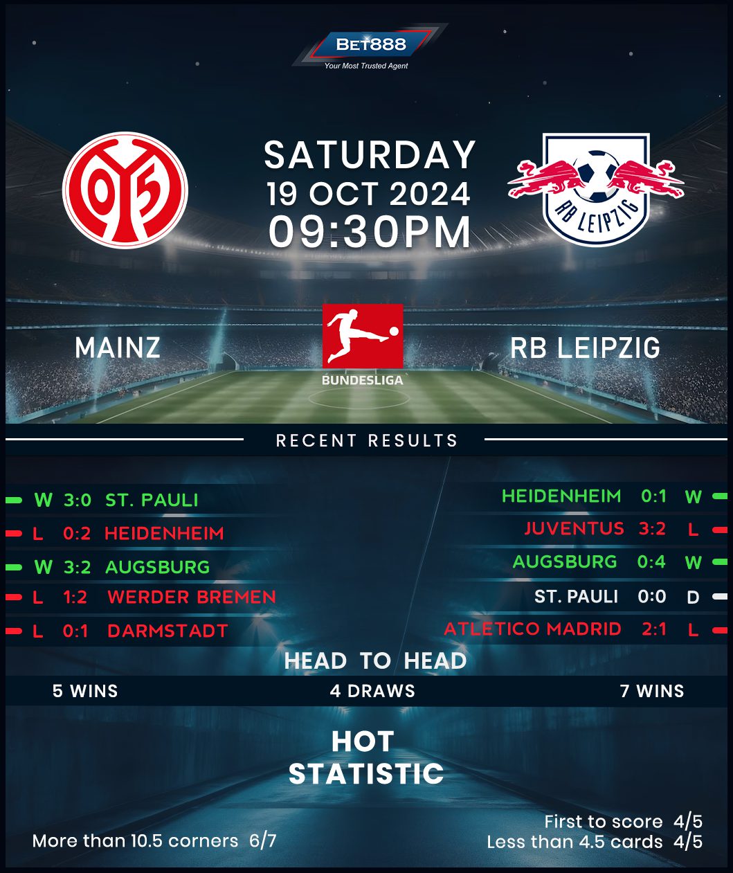 Bundesliga joint-leaders RB Leipzig take a historically tantalizing trip to the Mewa Arena, looking to arrest a four-game winless away H2H run against Mainz (D1, L3).