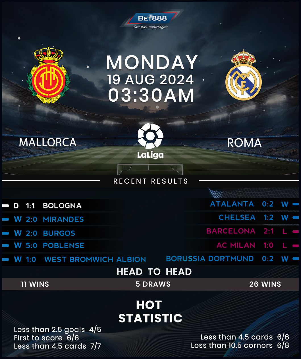 Last season’s sub-par 15th-place finish signaled the end of Javier Aguirre’s managerial tenure at Mallorca, with former Osasuna boss Jagoba Arrasate replacing the Argentine veteran in the dugout. Mallorca’s pre-season form was impressive (W5, D1), yet it’s worth noting that none of those five wins came against top-tier opposition. Entertainment was a rare commodity at San Moix lately, with five of Mallorca’s last six home league outings yielding an identical 1-0 scoreline (W3, D1, L2). That same final score settled Mallorca’s both top-flight encounters against Real Madrid in 2023/24. Goals were at a premium for Mallorca last term. But they made up for their uneventful football with unparalleled commitment, finishing the season as one of only six La Liga sides to receive more than 100 yellow/red cards.