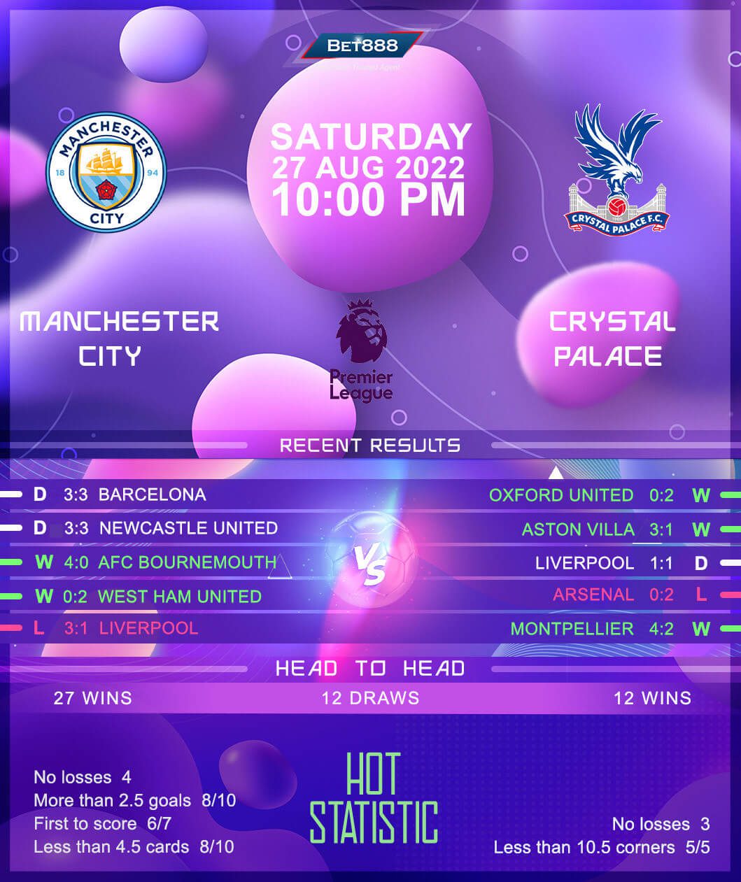 With Man City chasing history, Crystal Palace’s hopes of building on a two-game winning run in all competitions look rather slim. After a 3-1 home win over Aston Villa to end a two-match winless league start (D1, L1), Patrick Vieira’s side came out 2-0 victors in a midweek EFL Cup tie against lower-league Oxford United. But the ‘Eagles’ have already demonstrated they can cope with the Premier League big guns this term, having eked out a 1-1 draw at Liverpool on matchday two. Despite going winless in three of their last four Premier League away matches (W1, D2), Palace’s problems with inconsistent performances on the road could come back to haunt them. The Londoners managed a mere four Premier League victories outside Selhurst Park in 2021/22. Yet, they deserve the benefit of the doubt after finding the net in seven of their last eight top-flight travels.