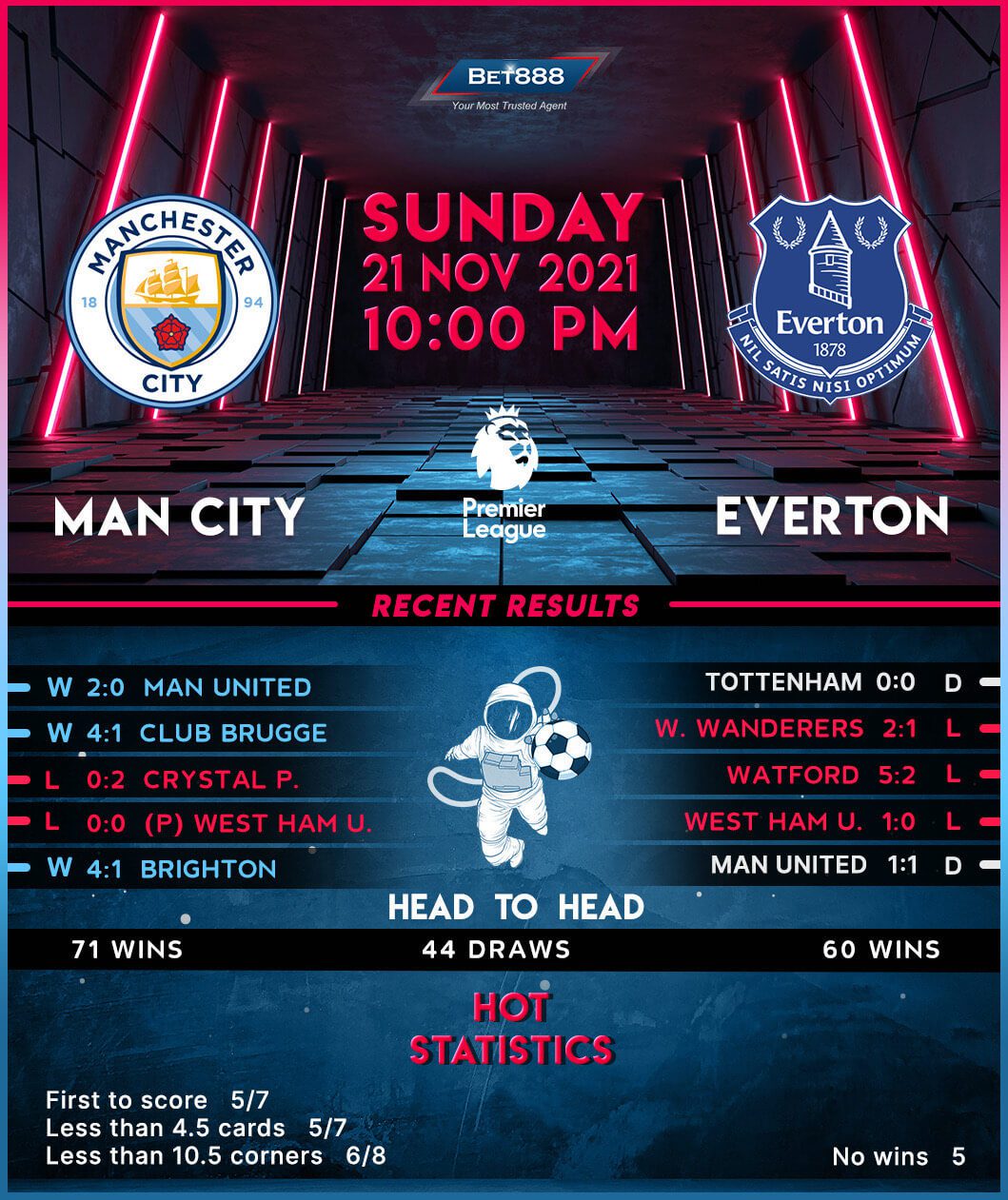 Manchester City bounced back from a frustrating 2-0 home defeat to Crystal Palace in late October with an eye-catching 2-0 derby win over Manchester United last time out. But, Pep Guardiola’s inability to land an out-and-out striker in the summer has come back to bite him a couple of times this term, with City drawing a blank in two of their last three Premier League home outings (W1, D1, L1). Worryingly, the reigning English champions have already lost four top-flight home matches in 2021, just one defeat less than they suffered in 2017, 2018, 2019, and 2020 combined (5)! However, the ‘Citizens’ will be confident of hitting the ground running at the Etihad after beating Everton in their last seven top-flight H2Hs as hosts by an aggregate score of 21-5.