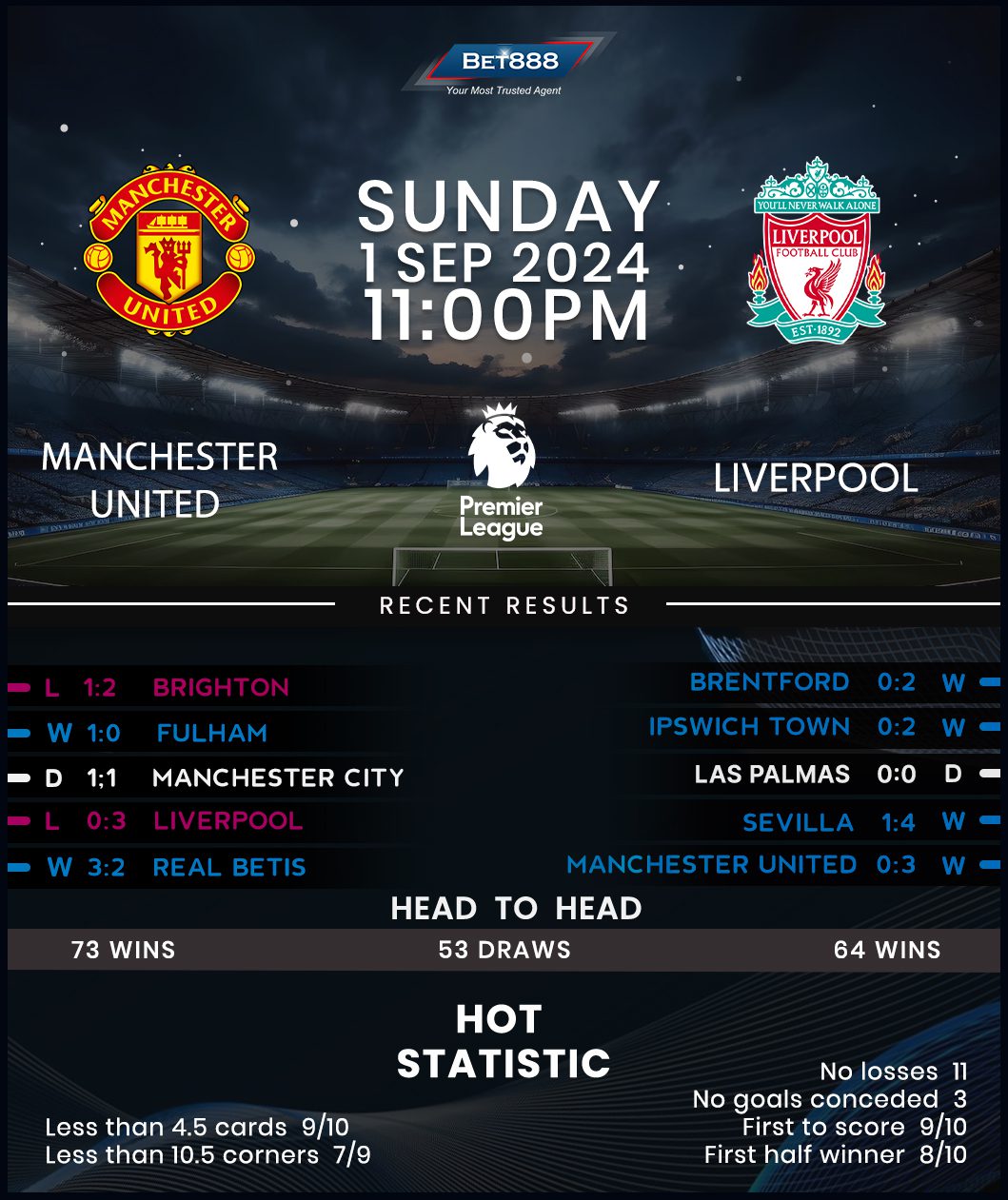 A lot has changed at Anfield since that loss. Long-serving manager Jurgen Klopp left in the summer, with his successor, Arne Slot, inspiring Liverpool to a phenomenal league start. The Reds defeated Ipswich Town and Brentford in the opening two rounds by an identical 2-0 scoreline, with three of the four goals they scored in those matches coming beyond halftime. The Merseyside giants could start a new top-flight season with three consecutive wins ‘to nil’ for only the third time in the club’s storied history, but there’s a catch. They’ve failed to beat Man United in their last three competitive H2Hs at Old Trafford (D1, L2), conceding at least two goals on each occasion. That said, they’ve suffered just one defeat in their last six Premier League visits to this ground (W2, D3).