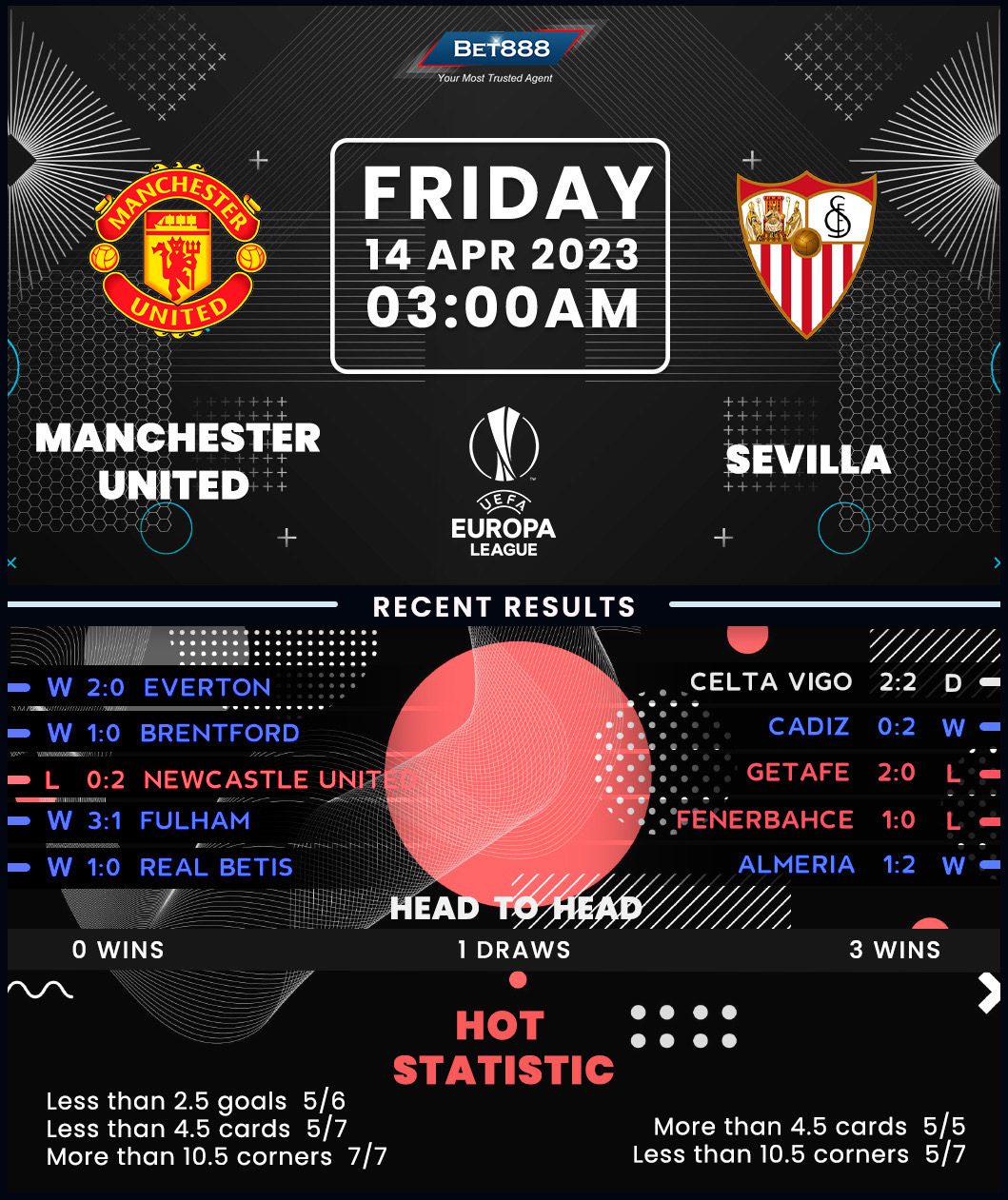 Meanwhile, Sevilla squeezed past Turkish powerhouse Fenerbahce in the previous Europa League knockout round, as a 1-0 second-leg defeat in Istanbul failed to undo their 2-0 advantage from the first leg. However, that loss in Turkey means ‘Los Rojiblancos’ are now winless on their last 11 continental travels (D5, L6), including three defeats in a row ahead of this trip. Led by new boss Jose Luis Mendilibar, Sevilla won 2-0 at Cadiz on the 62-year-old’s touchline debut but could only manage a 2-2 home draw against Celta Vigo last time out. With only five points separating them from La Liga’s drop zone, the Andalusian giants will unlikely feel comfortable in Manchester. Adding to this sentiment, before that triumph at Cadiz, Sevilla had lost four consecutive away games by an aggregate score of 11-1.