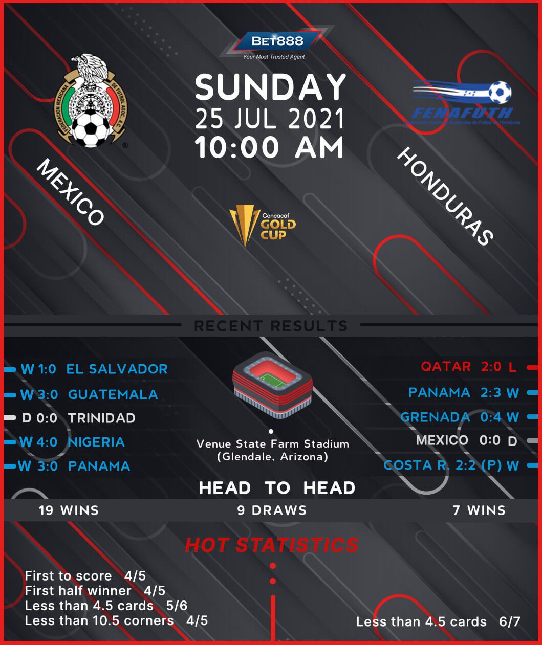 Mexico and Honduras are set to trade tackles at the State Farm Stadium in the 2021 CONCACAF Gold Cup quarter-finals.