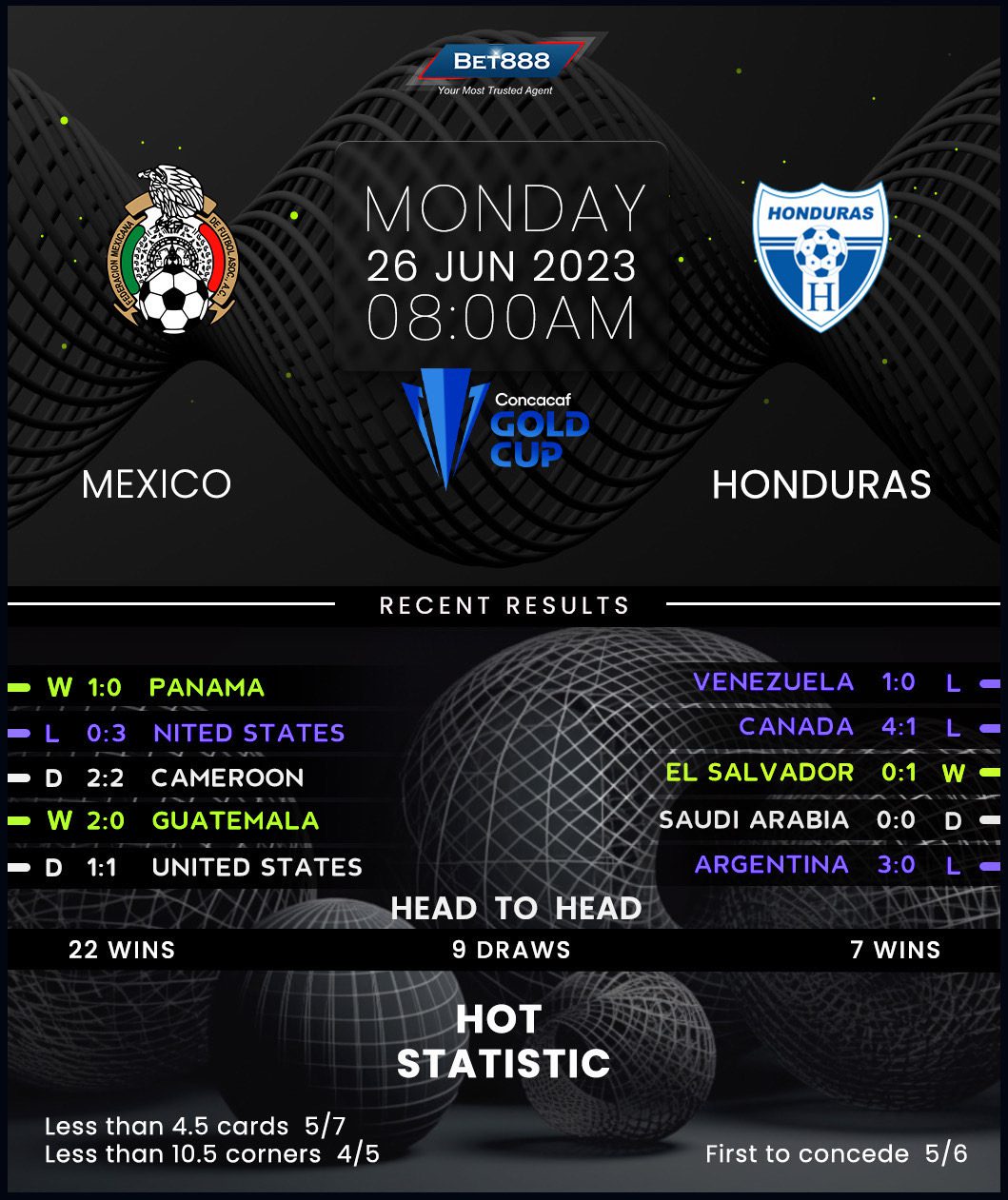 In the meantime, with the potential unrest in the Mexican camp, Honduras will be eager to take advantage and gain an edge over their Group B rivals in the pursuit of a quarter-final spot. However, that ought to be easier said than done, with ‘Los Los Catrachos’ racking up a mere four wins in 27 internationals in the build-up to the tournament (D5, L18). This encounter marks the fifth head-to-head clash between Mexico and Honduras in just over two years. Unfortunately for Honduras, they have been unsuccessful in all four prior meetings, failing to score a goal during that period (D1, L3). By extension, they have only managed one win in their last 11 H2Hs against Mexico (D3, L7), a run that included a 3-0 quarter-final demolition at the 2021 Gold Cup.