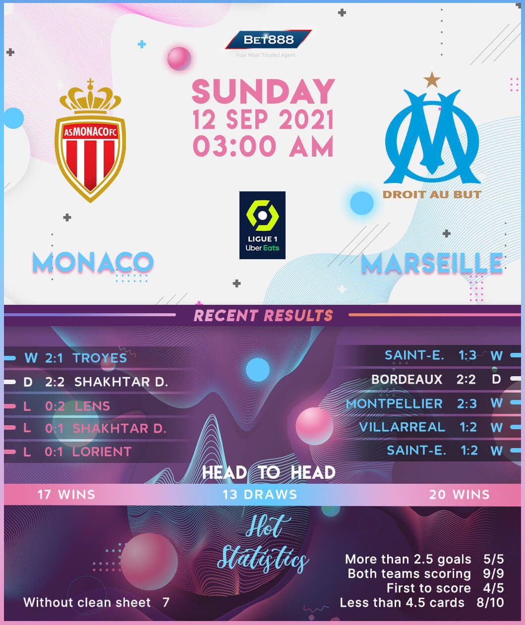 Sofiane Diop’s double either side of half-time helped Monaco edge past Troyes 2-1 on the road last time out, bringing a three-game winless start to this Ligue 1 campaign to a halt (D1, L2). Desperate to move out of the bottom half of the standings, ‘Les Monégasques‘ have to improve upon their paltry scoring return of just 0.75 goals scored per league match this term. Marseille’s visit to the French principality looks like a prime opportunity for the home side to rediscover their ‘killer instincts,’ having netted 2+ goals in each of their last six top-flight H2Hs as hosts (W4, L2). Worryingly, though, Niko Kovac’s men have suffered two defeats across their last four home Ligue 1 outings (W1, D1), as many as they had in their previous 21 in the competition (W13, D6).