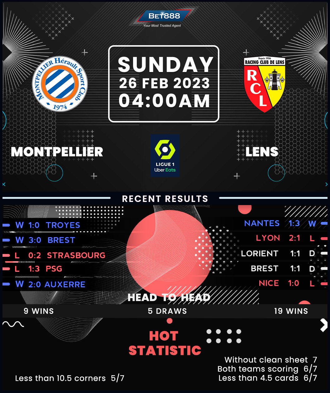 Stade de la Mosson is the venue as Montpellier and Lens go head-to-heaad in a lopsided Ligue 1 encounter.