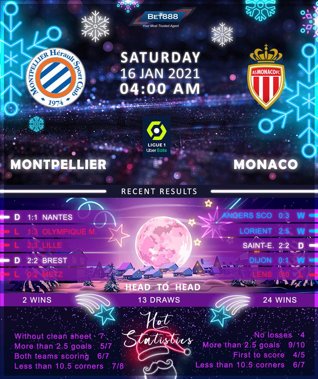 Montpellier vs Monaco 16/01/21