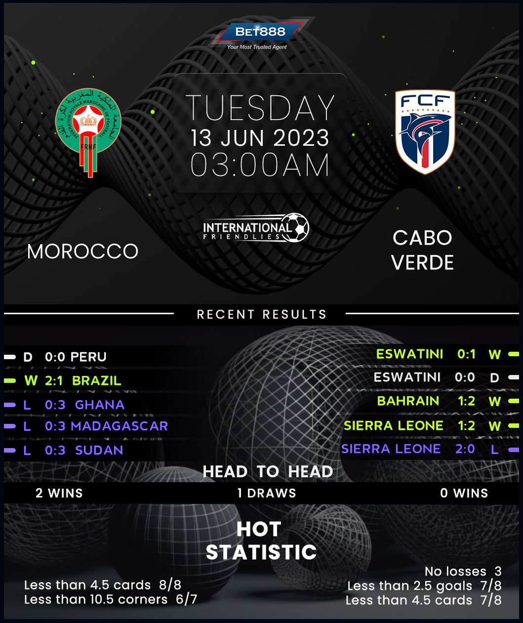 Morocco and Cape Verde are set to trade tackles at the Stade Prince Moulay Abdallah in an all-CAF international friendly.