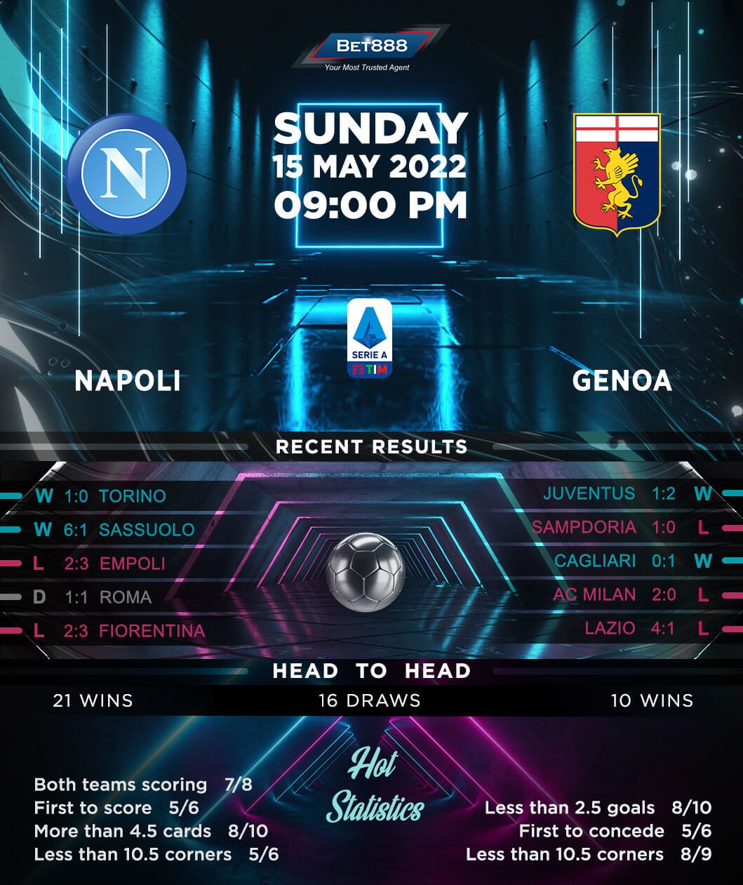 Despite bettering last season’s fifth-place finish and securing a coveted Champions League return after a season-long absence from Europe’s most prestigious competition, this season has left a bitter taste in Napoli’s mouths. ‘I Partenopei’ were long in contention for their first Scudetto since the glory days of Diego Maradona, but not even back-to-back league wins ahead of the kick-off were enough to keep them in the title race. Napoli’s indifferent four-game home form in Serie A (W2, D1, L1) has led the devastated club supporters to throw eggs at the team’s bus ahead of Lorenzo Insigne’s final home game. All that could shake up under-pressure boss Luciano Spalletti, who aims to maintain Napoli’s eye-catching 12-game unbeaten home Serie A streak against Genoa (W8, D4). With four clean sheets from their last five top-flight H2Hs in Naples, the hosts will feel confident about getting a step closer to a third-place finish.