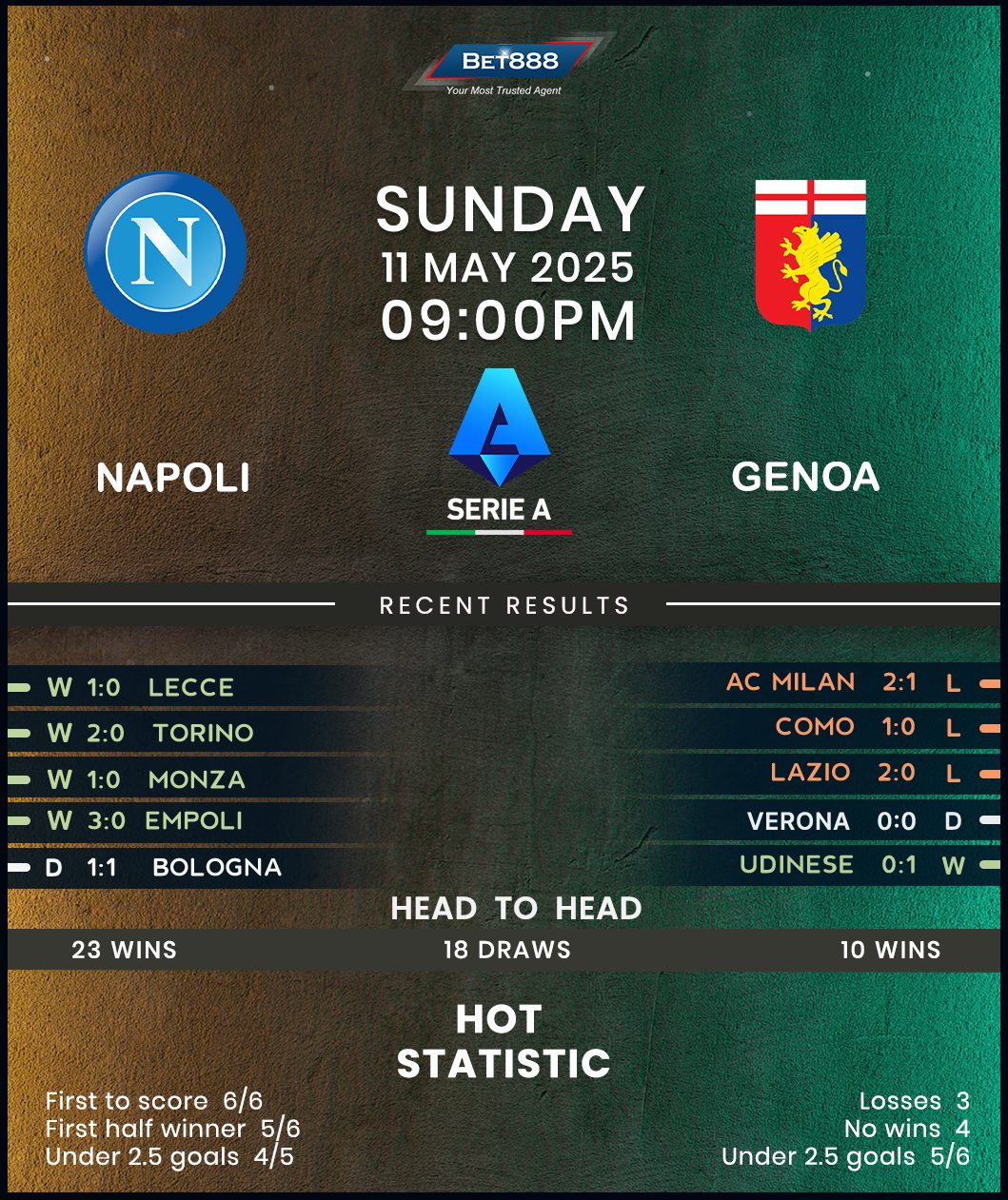 Stadio Diego Armando Maradona is the venue as Serie A leaders Napoli and bottom-half Genoa square off in contrasting spirits.