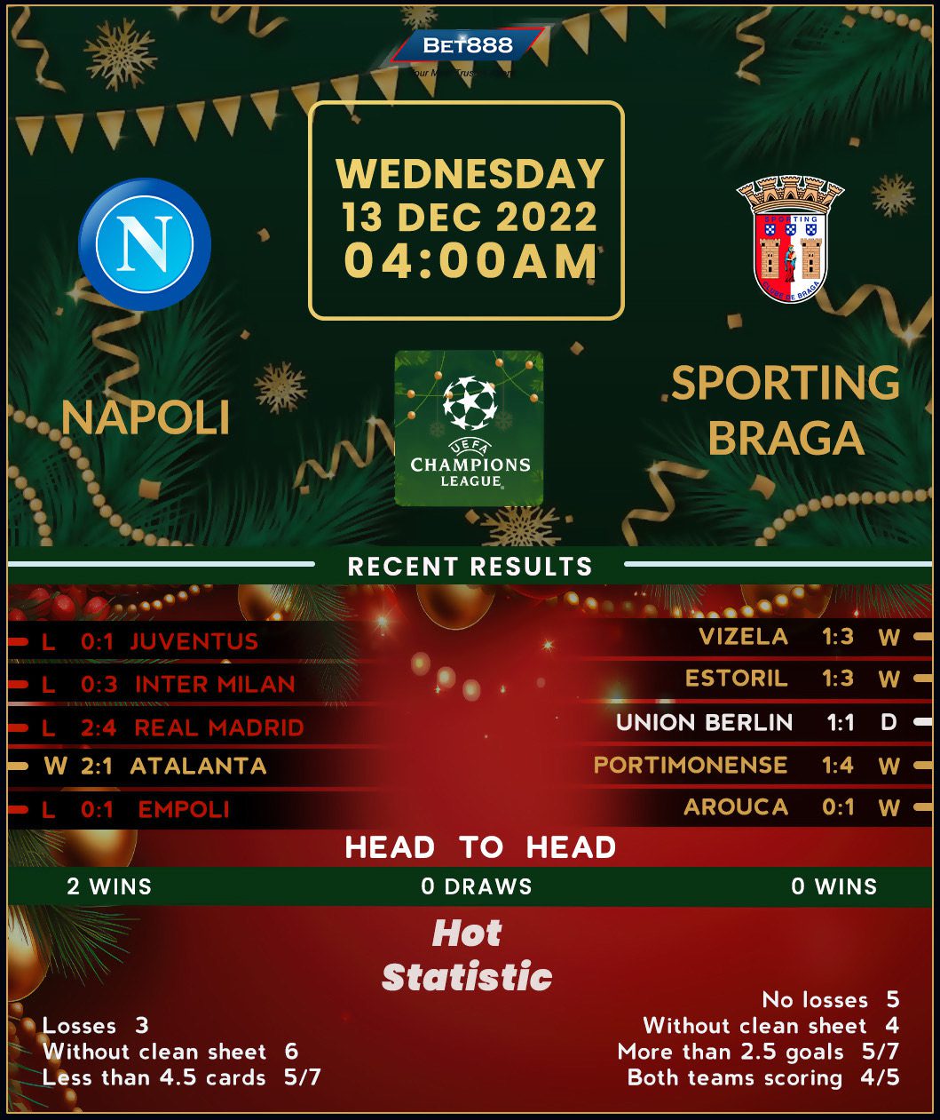 Napoli’s bid to qualify for the Champions League round of 16 is on the line as they welcome Sporting Braga to the Stadio Diego Armando Maradona.