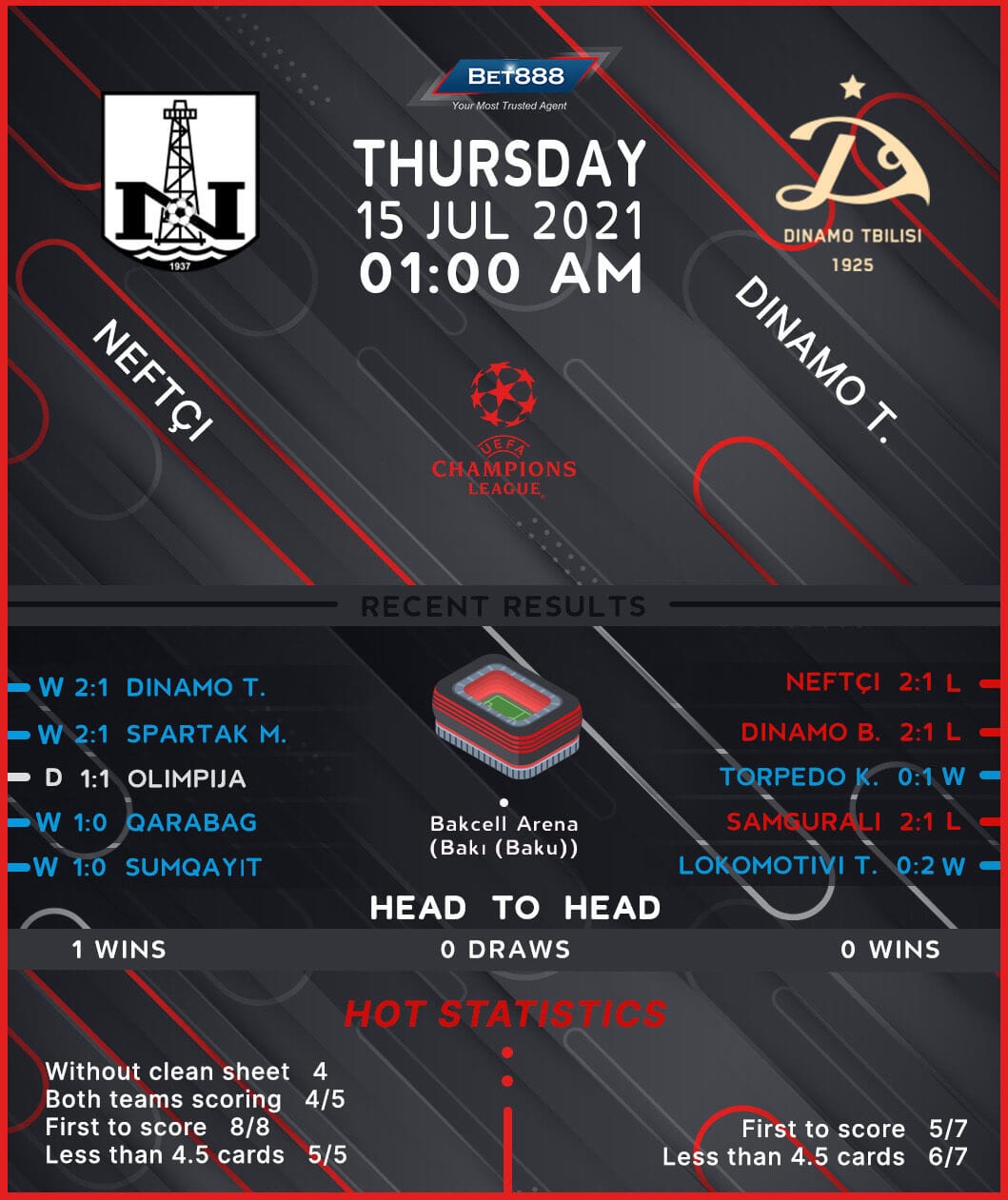 Neftci Baku will be looking to complete the work and reach the next Champions League qualifying stage when they take on Dinamo Tbilisi in the return leg of their last-16 qualifying tie at the Bakcell Arena.