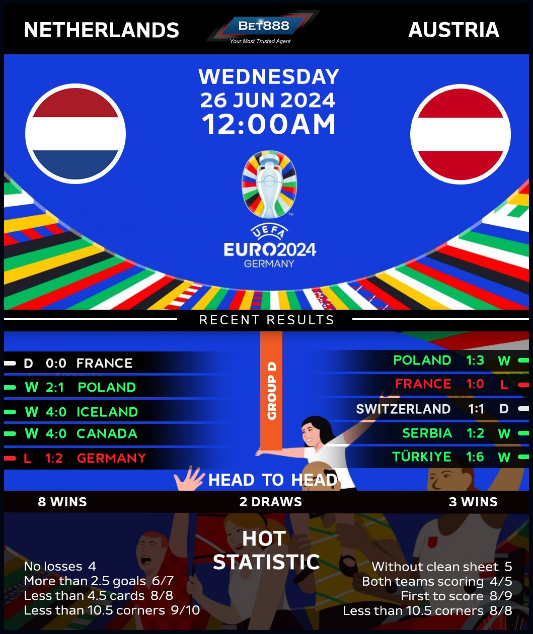 A place in the Euro 2024 knockout phase is on the line as the Netherlands and Austria go head-to-head in a blockbuster showdown at the Olympiastadion in Berlin.