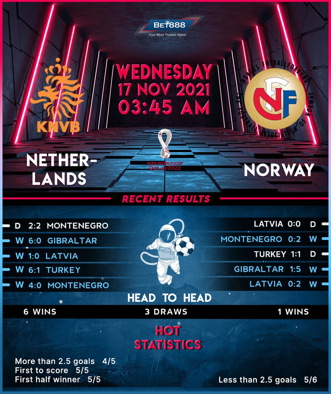 The Netherlands were ten minutes away from sealing a place at next year’s tournament in Qatar, but Montenegro staged a late comeback to hold them to a 2-2 draw last time out. Louis van Gaal, who remains unbeaten in his six 2022 World Cup qualifying games in charge (W4, D2), needs to avoid defeat here to send the ‘Flying Dutchmen’ to the World Cup finals for the first time since 2014. With just three points separating the top-three teams in Group G, everything is still very much open on the final matchday. Yet, the Netherlands will be confident of holding Norway winless here, having not lost any of their last international H2Hs, including friendlies (W4, D3). With six of those seven matches featuring under 2.5 total goals, a low-scoring affair could well be on the cards here.