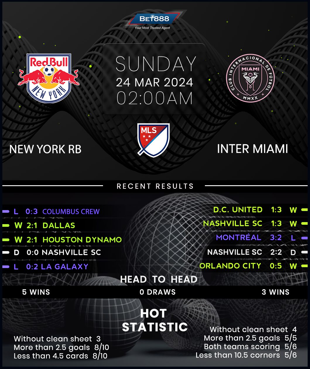 A lack of consistency has been evident during Inter Miami’s early season, with Gerardo Martino’s side alternating between winning (3) and not (D1, L1) across their first five MLS outings. Much of Inter’s success in the opening exchanges has relied on ex-Barcelona star Luis Suarez, who is the division’s joint-best scorer with four goals. Suarez’s second-half brace inspired the Herons to a landslide 3-1 victory at DC United last time out. The Uruguayan will have to replicate that performance if his team is to beat New York in back-to-back matches for the first time in their relatively short MLS history, not least because his old friend Lionel Messi is unavailable due to injury. Martino’s backline must try to hold up their end of the bargain after failing to keep a clean sheet on their last seven MLS travels.