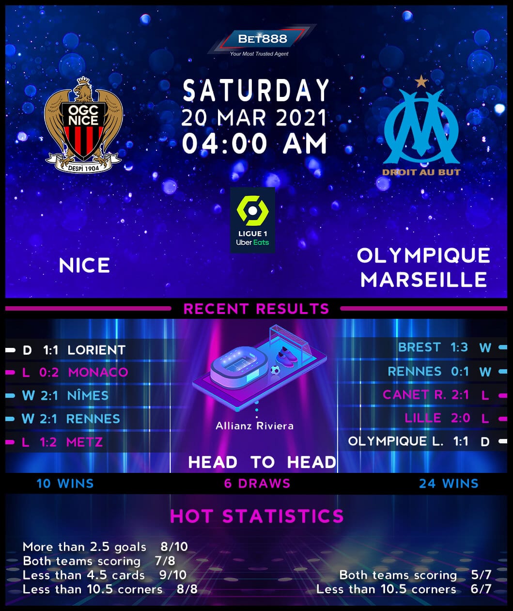 Allianz Riviera is the venue as two resurgent Ligue 1 sides, Nice and Olympique Marseille, meet in an exciting fixture.