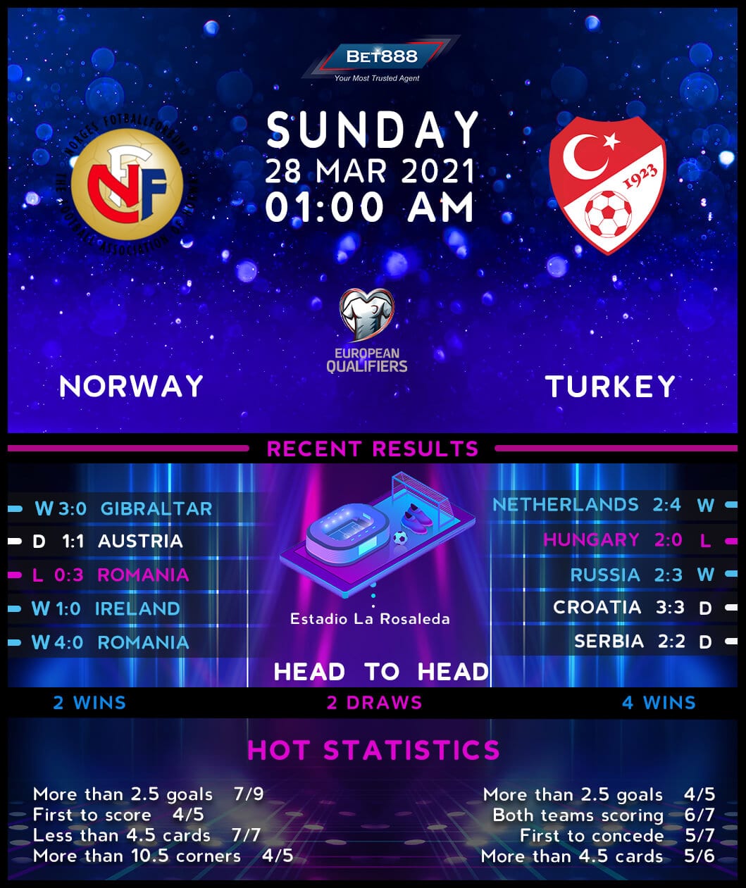 A comfortable 3-0 away victory over doomed Gibraltar in their opening Group G fixture saw Norway continue to build on their form from the closing stage of the previous World Cup Qualifying campaign. They have now won four of their last five World Cup Qualifying games (L1), all of which without conceding. Indeed, Ståle Solbakken’s men did finish their previous qualifying series for the World Cup finals in remarkable fashion, scoring the opening goal in three of their last four home games to win each of them (D1). As for their recent performance, the ‘Lions’ are on a run of six competitive matches without losing within 90 minutes (W4, D2), excluding a walkover result against Romania. Turkey may throw a spanner in the works to Norway’s imperious home form, knowing the Scandinavians have failed to win any of their last three competitive H2Hs (D1, L2).