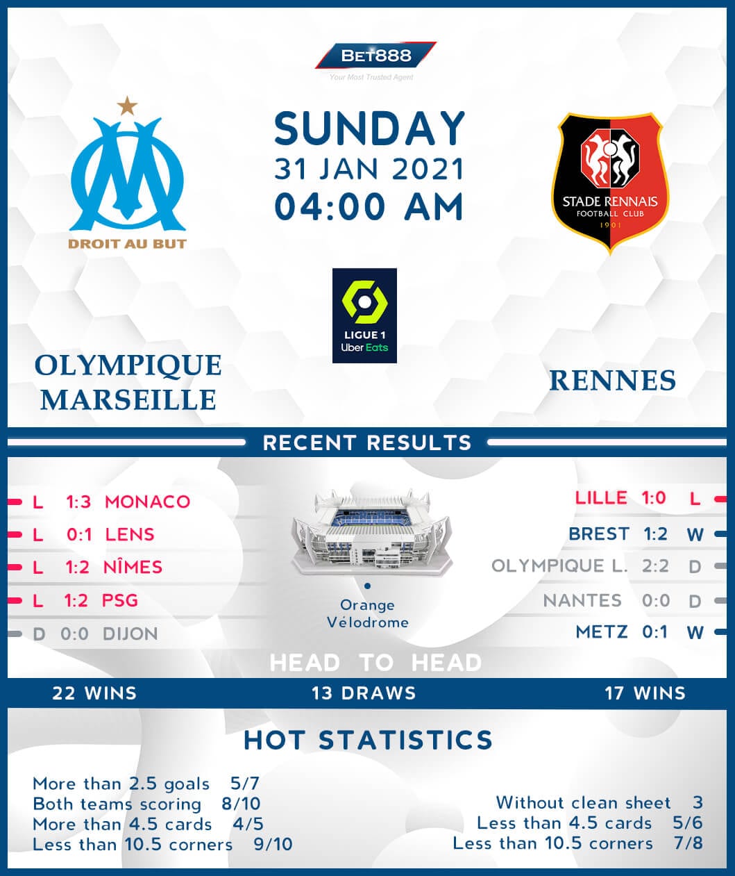 Olympique Marseille vs Rennes 31/01/21