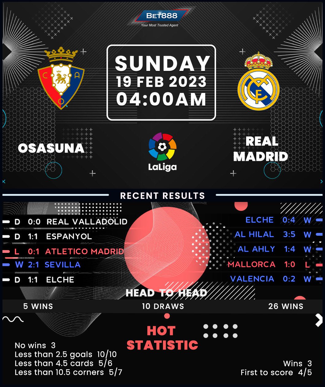 Reigning La Liga holders Real Madrid travel to El Sadar to encounter mid-table strugglers Osasuna in a must-win contest.