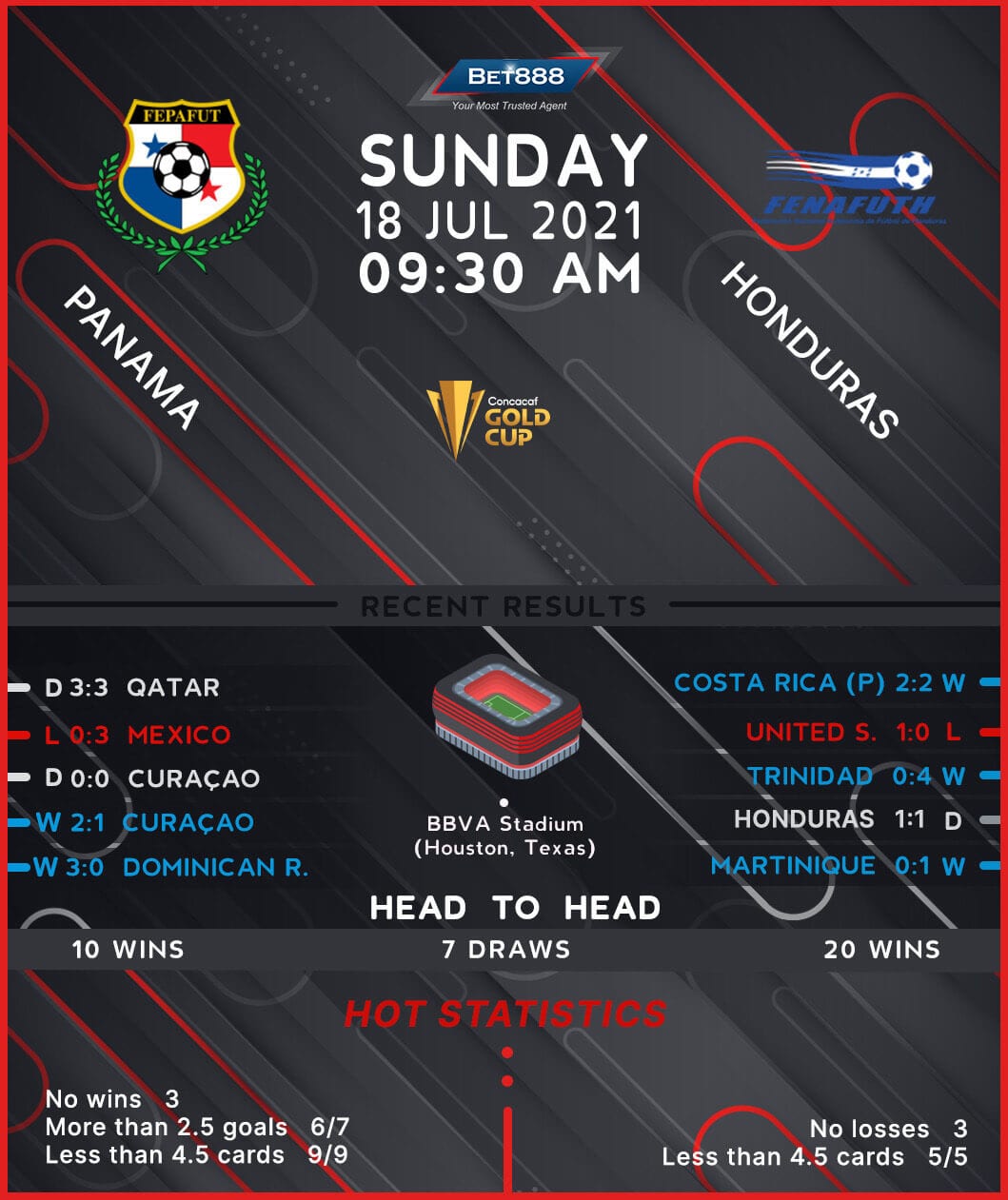 Honduras will be looking to all but nail down a place in the 2021 CONCACAF Gold Cup knock-outs when they lock horns with Panama at the BBVA Compass Stadium.