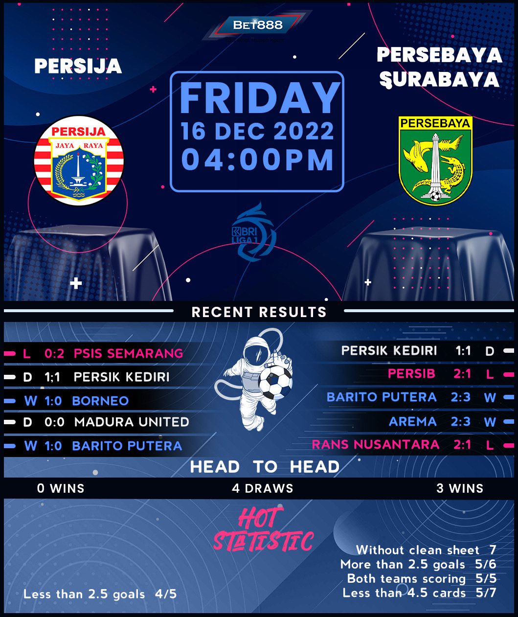 Having alternated between winning (2) and drawing (2) across four Liga 1 matches between mid-November and mid-December, Persija Jakarta slipped to a 2-0 defeat at PSIS Semarang last time out, throwing their title hopes into doubt. With five points separating them from table-topping Bali United, the ‘Kemayoran Tigers’ will be out to arrest a frustrating three-match winless H2H home league streak against Persebaya (D1, L2) and steady the ship. Too hot to handle on the home turf, Thomas Doll’s men have yet to lose a single home league fixture this term (W4, D2), conceding a league joint-low three goals across those six matches.
