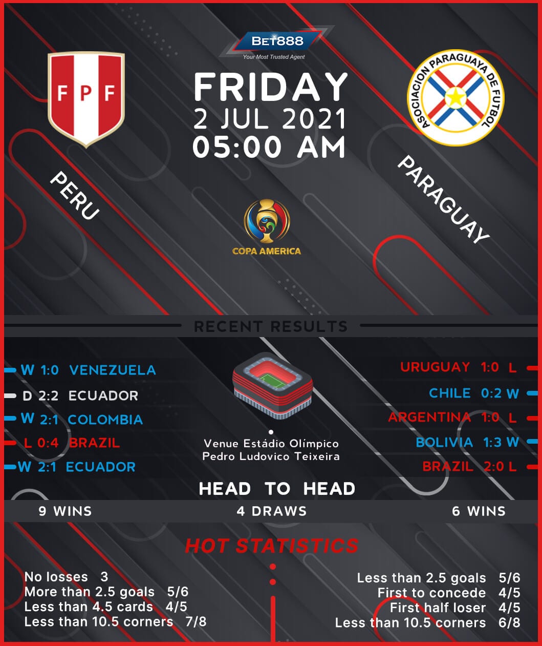 Estadio Olimpico Pedro Ludovico hosts an intriguing Copa America 2021 quarter-final showdown as Peru and Paraguay battle it out for a place in the semis.
