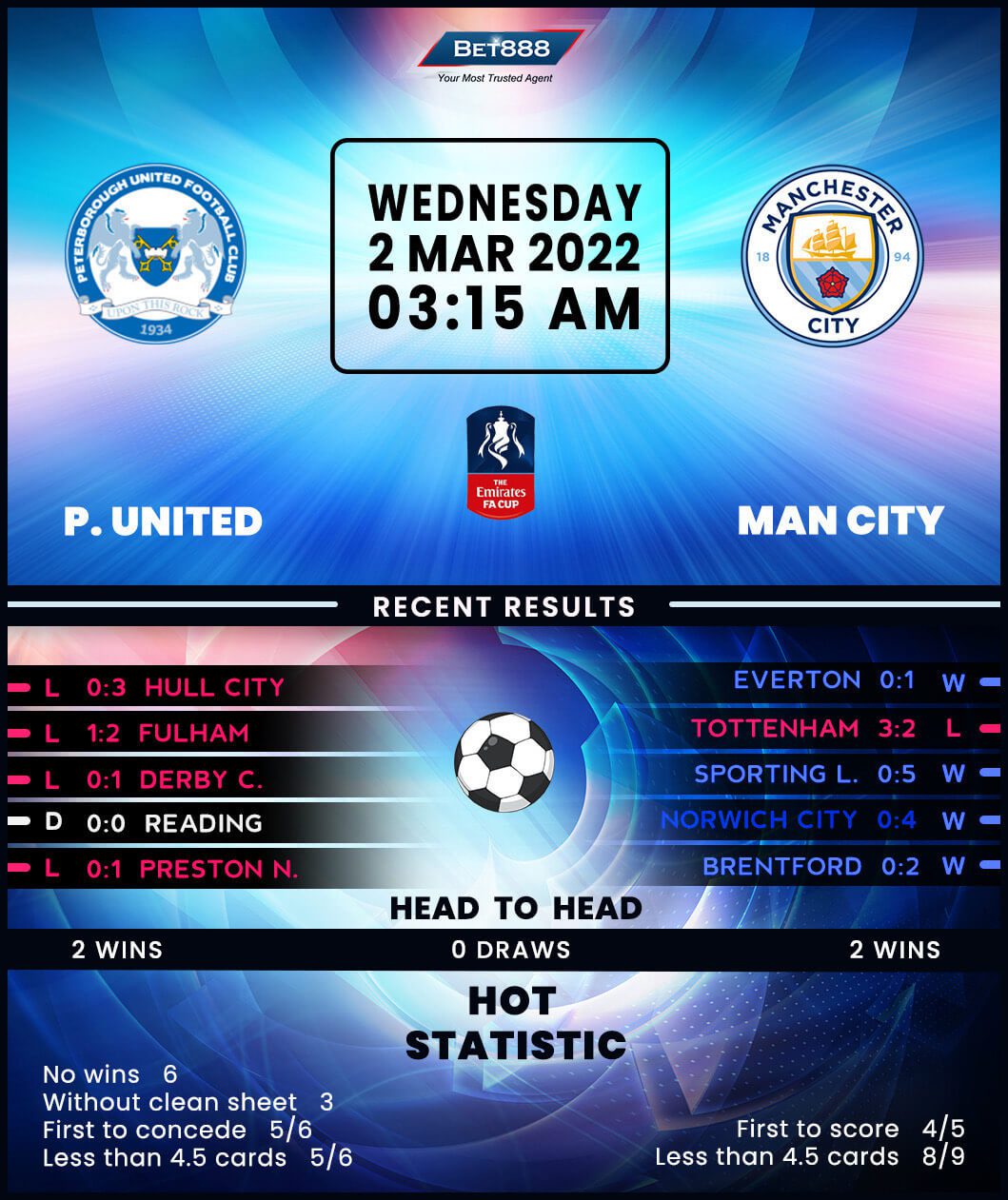 Since toppling fellow Championship rivals QPR 2-0 in the previous FA Cup round, Peterborough have gone winless in their last six league matches in a row (D1, L5), failing to get on the scoresheet five times in the process. What’s more, the ‘Posh’ are winless in their last three home outings (D1, L1), drawing a blank on each occasion. Peterborough, who already look like a doomed outfit here, are warm relegation candidates to suffer Championship relegation this term as they currently sit bottom of the table. Their first encounter against Man City since February 1981 doesn’t offer much comfort, with Peterborough sustaining a 1-0 defeat in the FA Cup fifth round in their only previous competitive H2H.