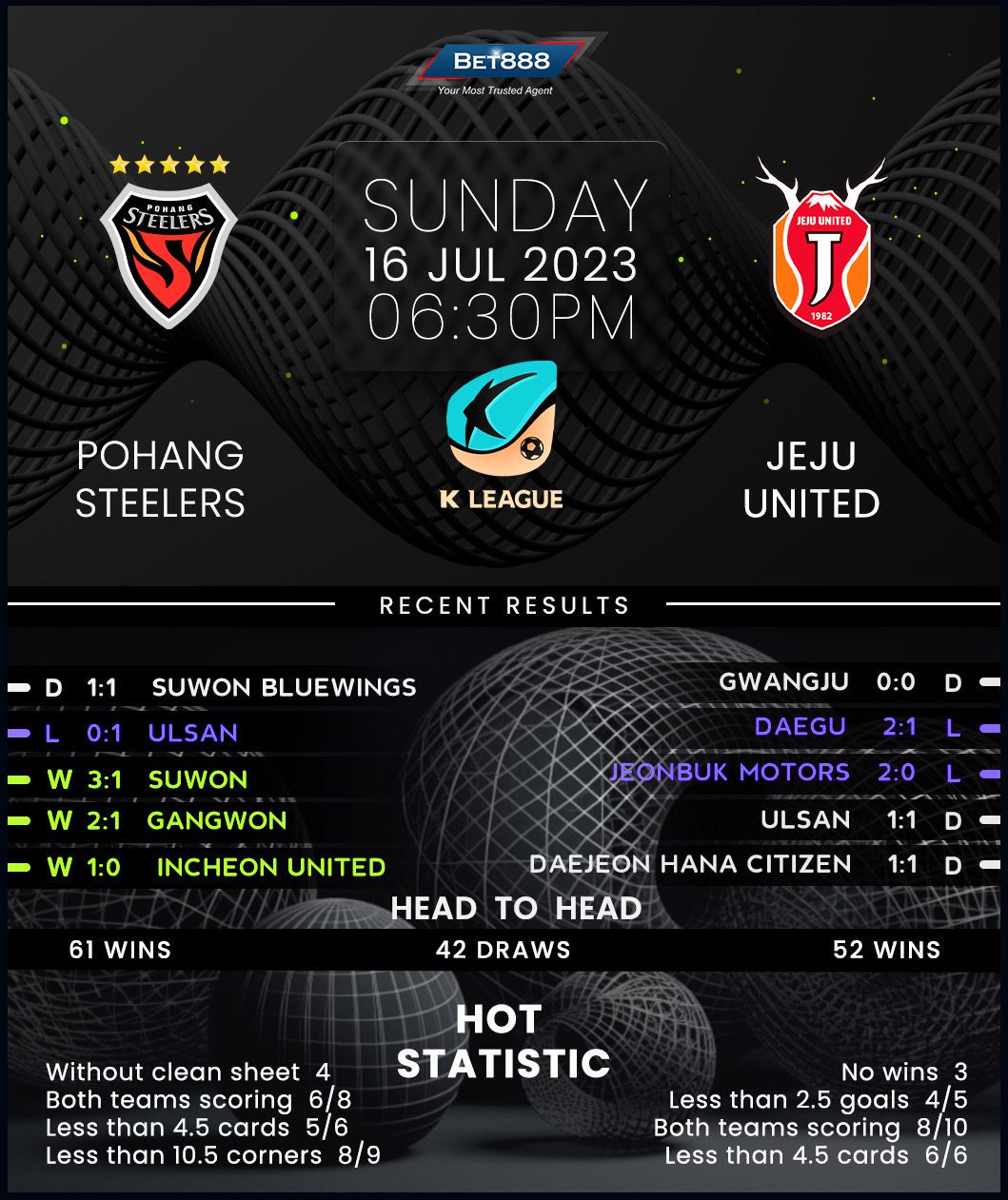 Pohang Steel Yard forms the backdrop for a high-stakes K League 1 encounter between Pohang Steelers and Jeju United.