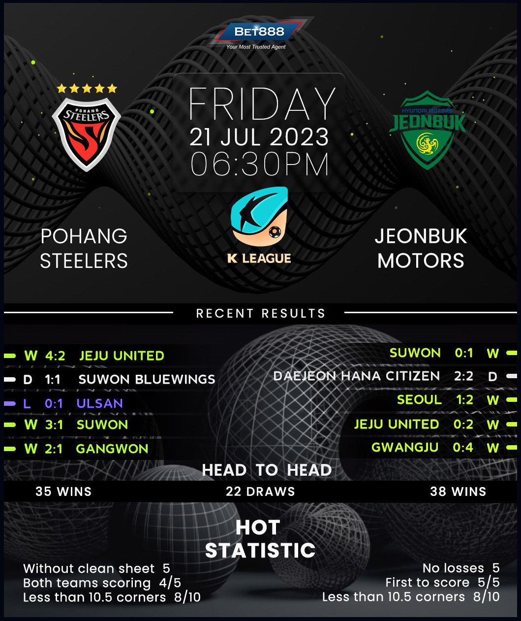 Pohang Steel Yard is the venue as Pohang Steelers and Jeonbuk Motors go head-to-head in a blockbuster K League 1 contest.
