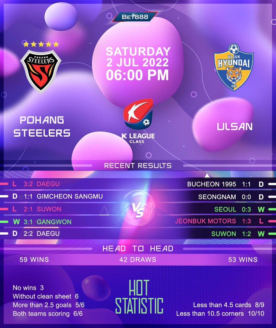 Pohang Steelers’ confidence could be at a record-low after their 1-0 lead turned into a 3-2 defeat at Daegu in the Korean Cup quarter-finals. Back to K League 1 proceedings, they will be aiming to improve an underwhelming four-match form (W1, D2, L1) and bounce back from a two-game winless league streak (D1, L1). Despite Pohang’s rotten patch, they have been fun to watch. Their last six competitive matches have featured both teams on the scoresheet, with five producing 3+ overall goals. Another high-scoring affair could be the order of the day, as 11 of their last 12 top-flight home meetings with Ulsan have contained over 2.5 goals.