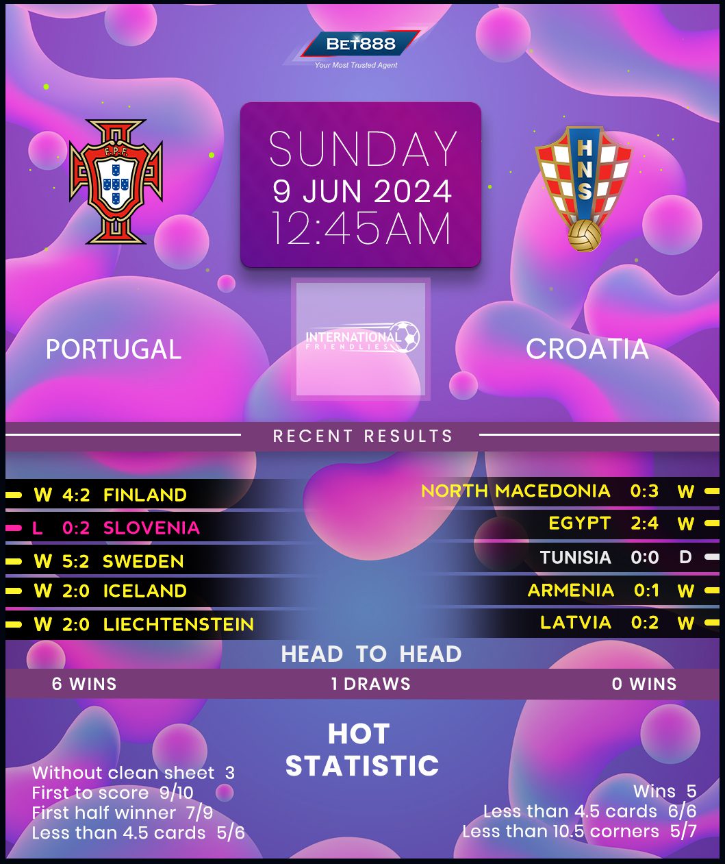 In the meantime, Croatia embarked on the final set of their warm-up fixtures for Euro 2024 on the front foot, thrashing North Macedonia 3-0 earlier this week to extend their unbeaten run to five matches (W4, D1). With four of those five games seeing Zlatko Dalic’s side keep a clean sheet, the Blazers ought to be confident about beating Portugal for the first time after seven failed attempts (D2, L5). Moreover, Croatia’s free-scoring away form since a third-place finish at the 2022 World Cup boosts their lofty ambitions, with the visitors bagging 2+ goals on four of their six international travels since returning from Qatar (W4, D1, L1). Worryingly for Dalic, his men conceded precisely twice in three of those six matches.