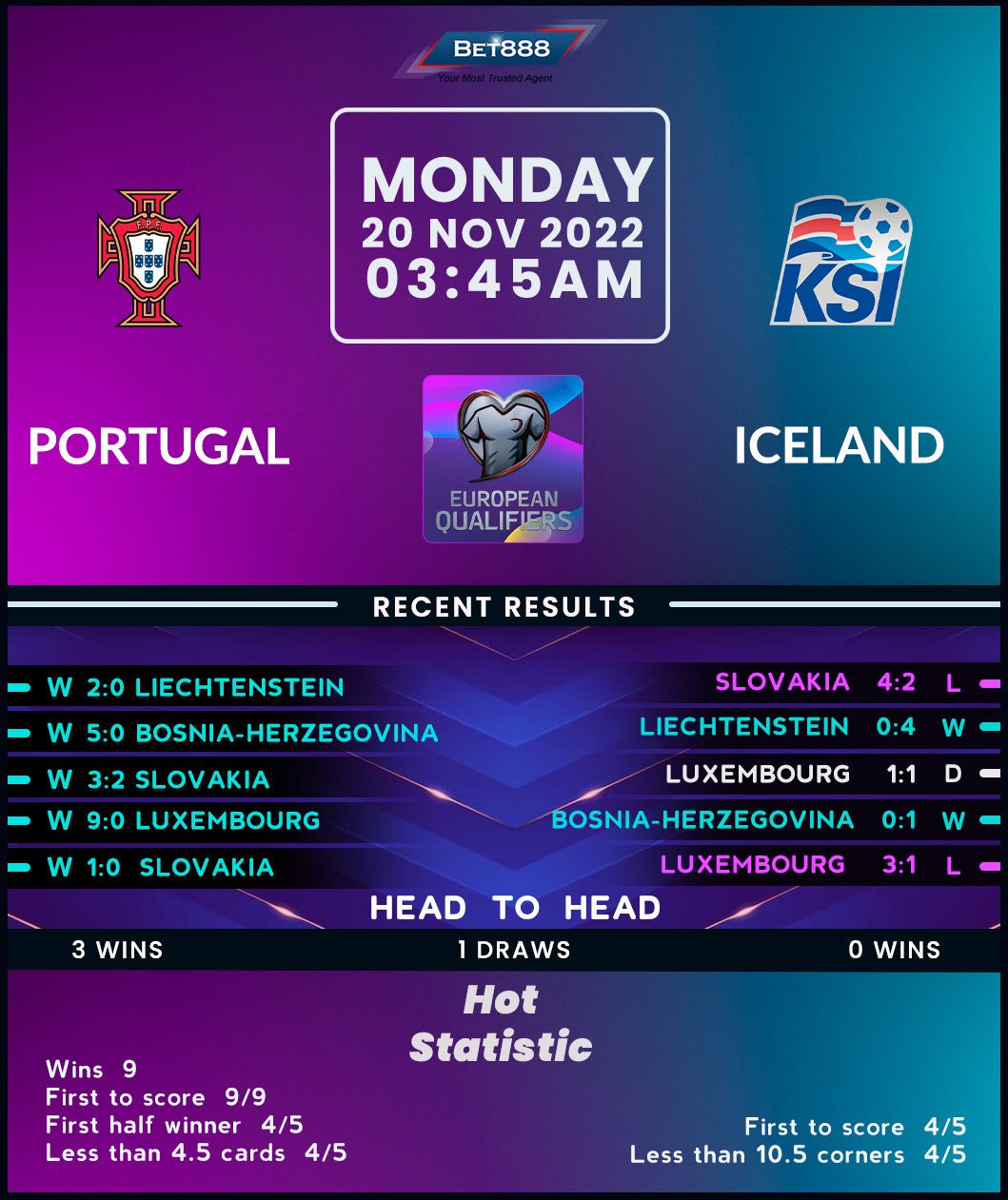 It took the Euro 2024 qualifying campaign’s most prolific nation over one half to penetrate Liechtenstein’s defense in the penultimate round, yet inspired by Cristiano Ronaldo’s deadlock-break, Portugal claimed a 2-0 win to get to the cusp of history. Having won all nine matches in Group J, the ‘Selecao’ could achieve a first-ever perfect Euros qualifying cycle. After winning three of their four previous encounters against Iceland (D1), including a narrow 1-0 triumph in the revere fixture, Roberto Martinez’s men look well-placed to see off this final obstacle. Virtually unplayable on home turf, the Euro 2016 winners have only lost once in 24 home Euro qualifiers in the 21st century (W17, D6), increasing the likelihood of another good result.