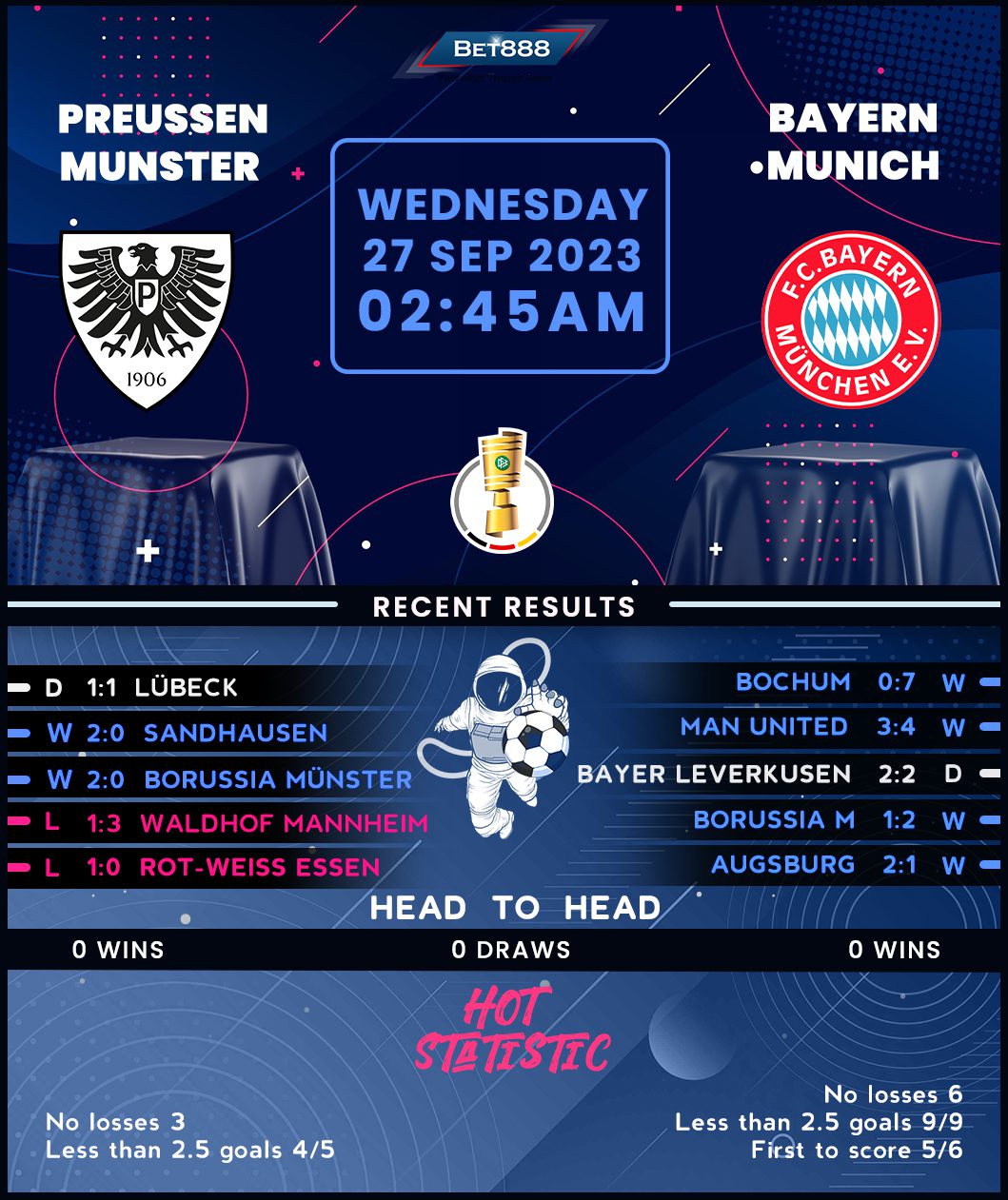 Preussen Munster and Bayern Munich lock horns in a lopsided DFB-Pokal round-one showdown at the Preussenstadion.